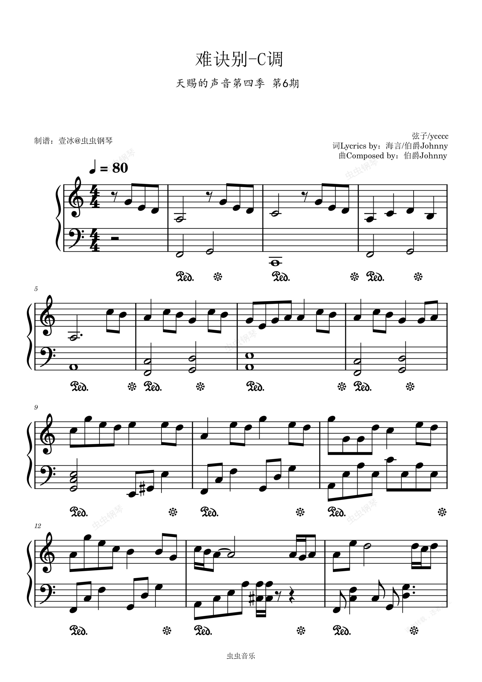 钢琴谱:【国风音韵】难诀别 简单易上手//天赐的声音第四季 第6期-C调