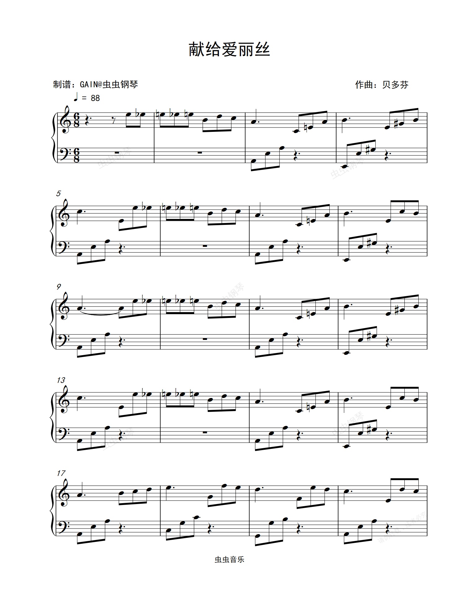 钢琴谱:献给爱丽丝-贝多芬