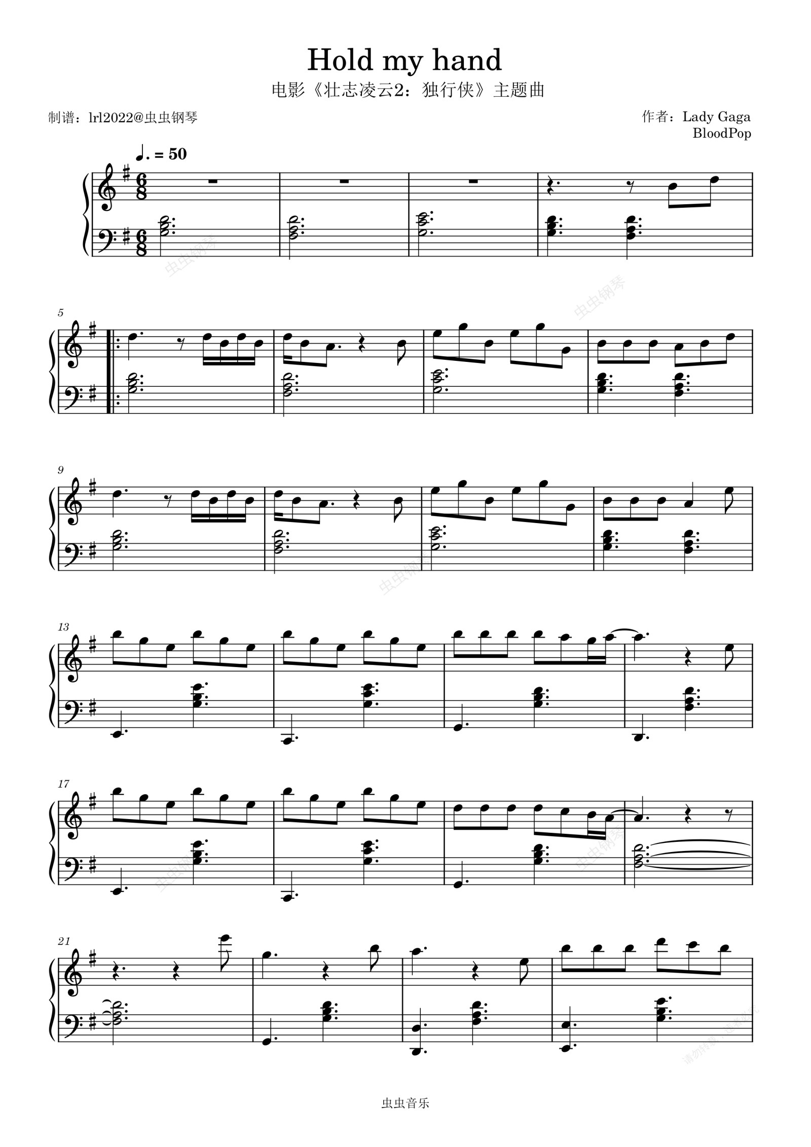 钢琴谱:Hold my hand - 电影《壮志凌云2:独行侠》主题曲 - 钢琴独奏