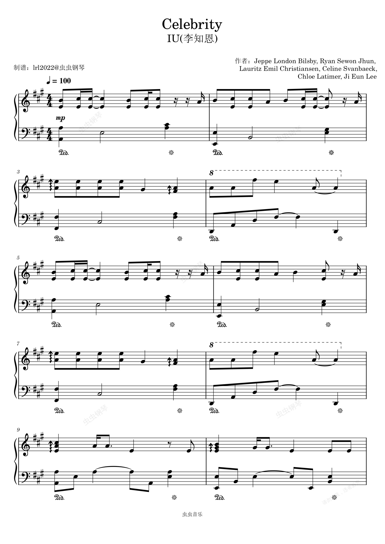 钢琴谱:Celebrity - IU(이지은) - 李知恩 - 钢琴独奏