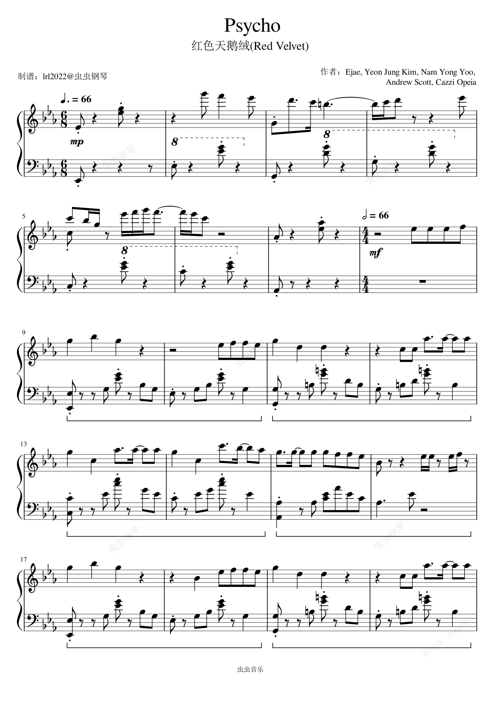 钢琴谱:Psycho - 红色天鹅绒(Red Velvet) - 钢琴独奏