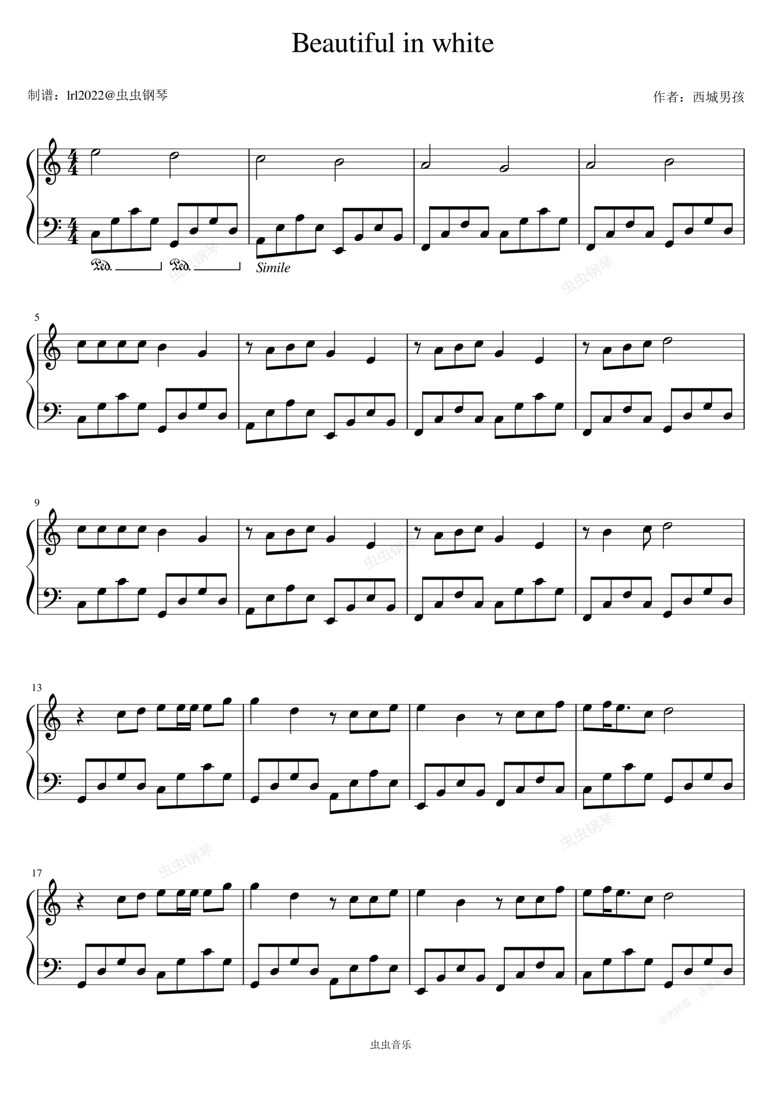 钢琴谱:Beautiful in White - Westlife - 西城男孩 - 钢琴独奏