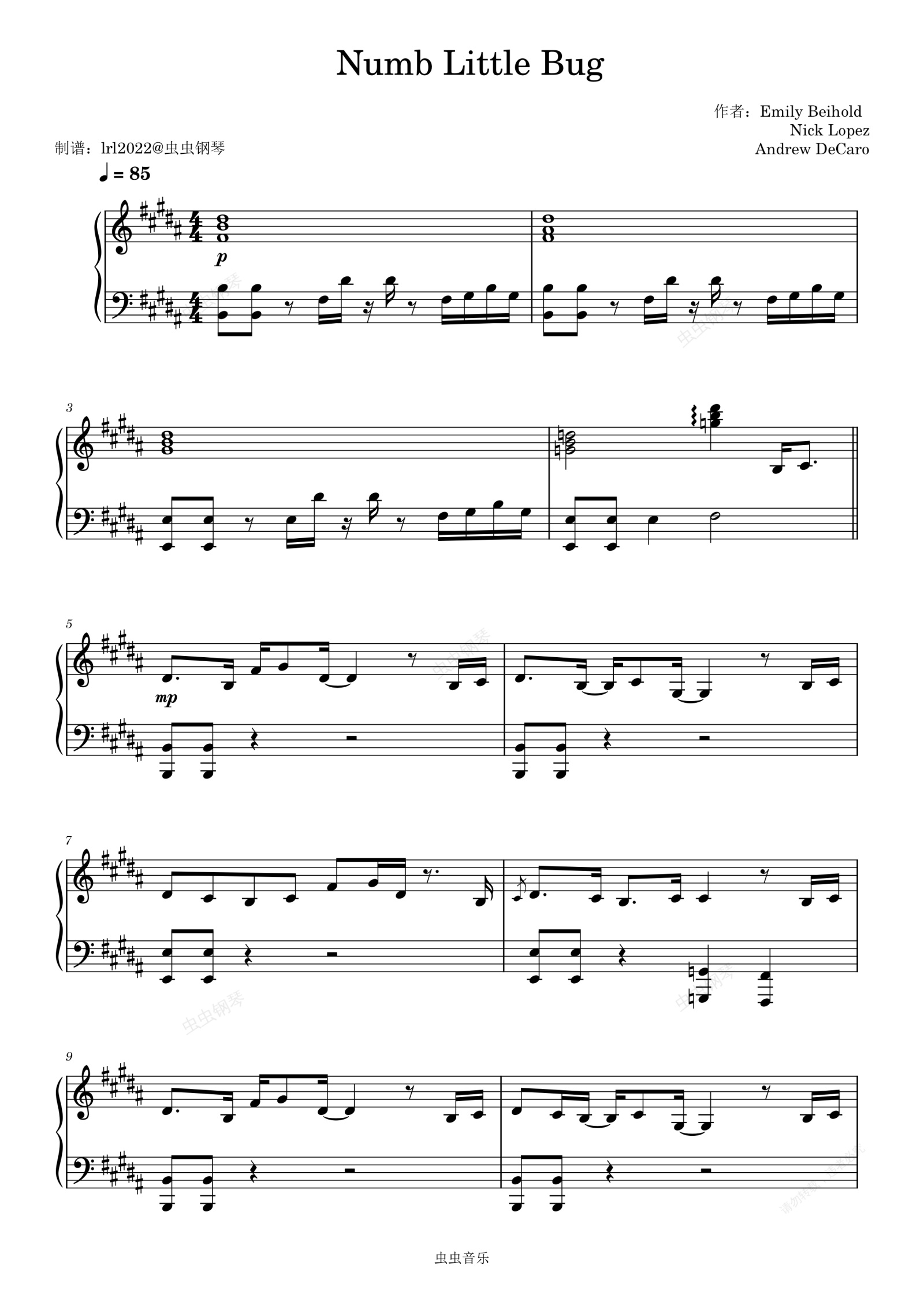 钢琴谱:Numb Little Bug – Em Beihold - 钢琴独奏