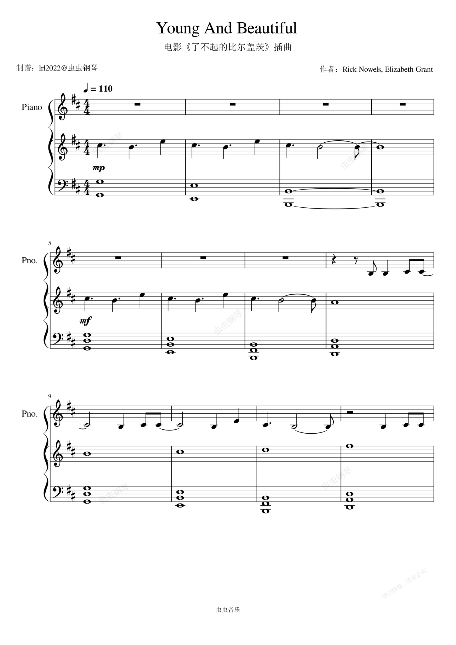 钢琴谱:Young And Beautiful - 电影《了不起的比尔盖茨》插曲 - 钢琴伴奏