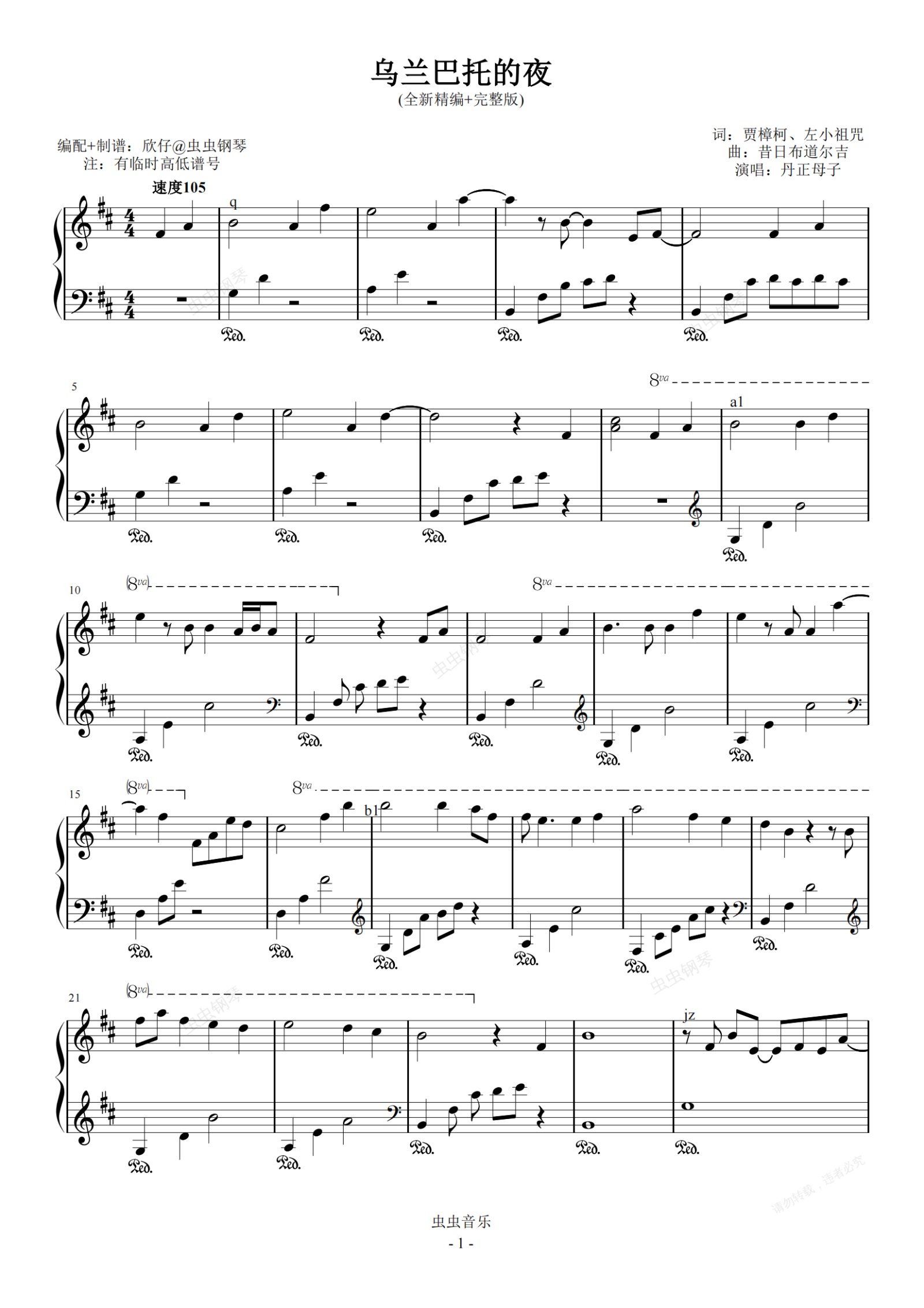 钢琴谱:D-《乌兰巴托的夜》(全新精编+完整版)