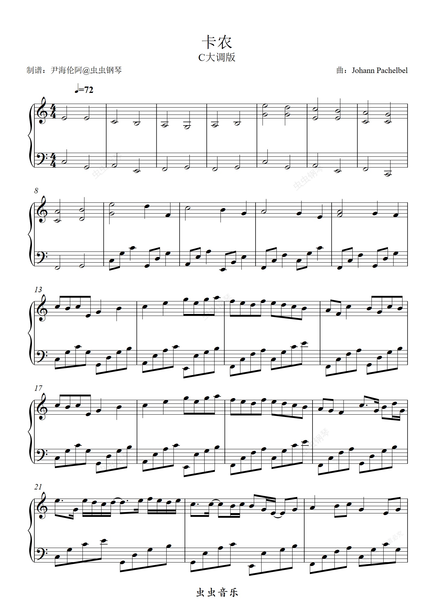 钢琴谱:卡农