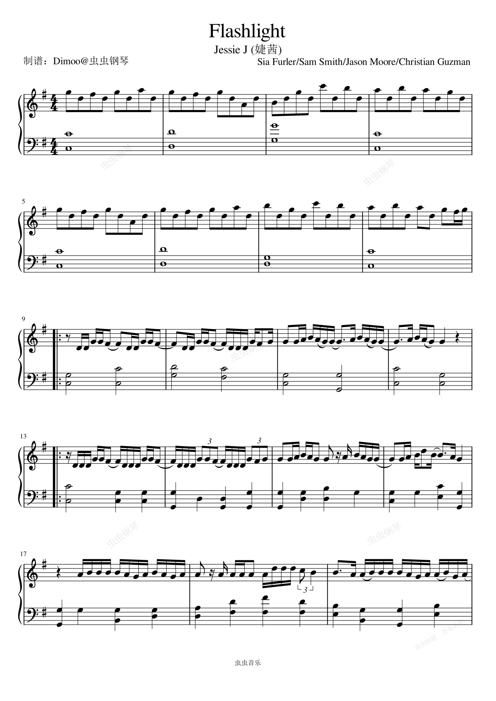 钢琴谱:Flashlight (From "Pitch Perfect 2" Soundtrack) - Jessie J (婕茜)