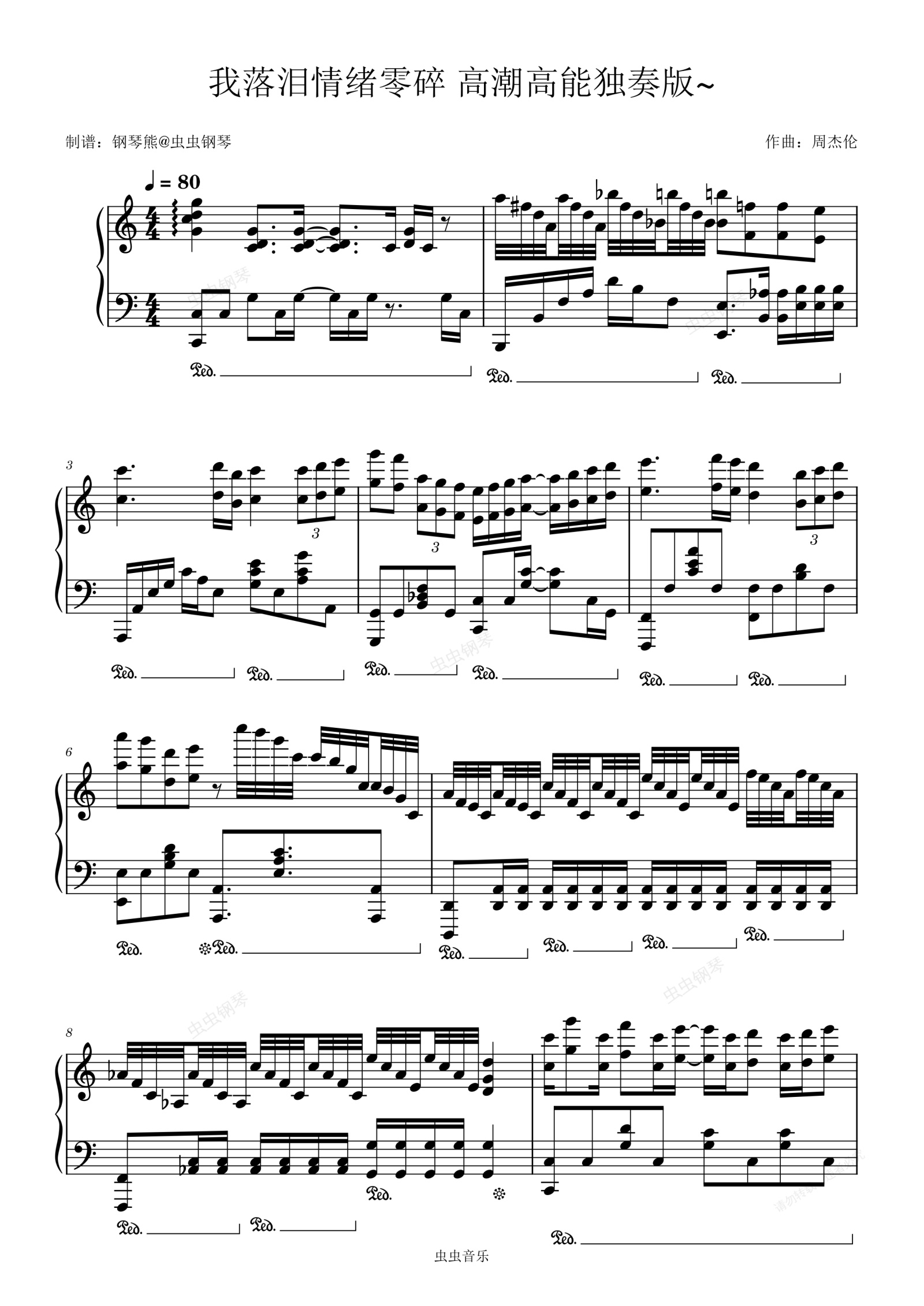 钢琴谱:《我落泪情绪零碎》极致还原版~