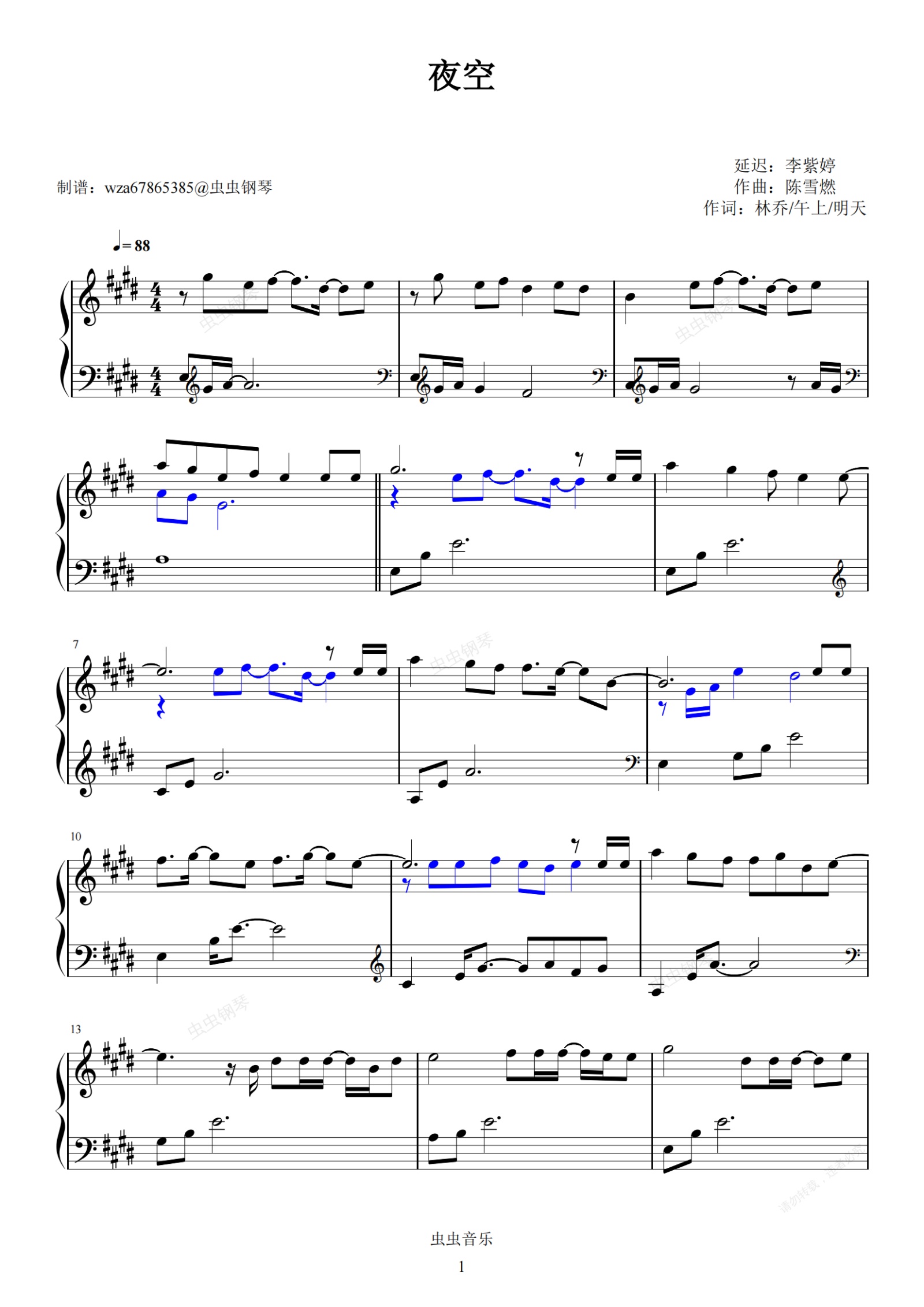 钢琴谱:夜空