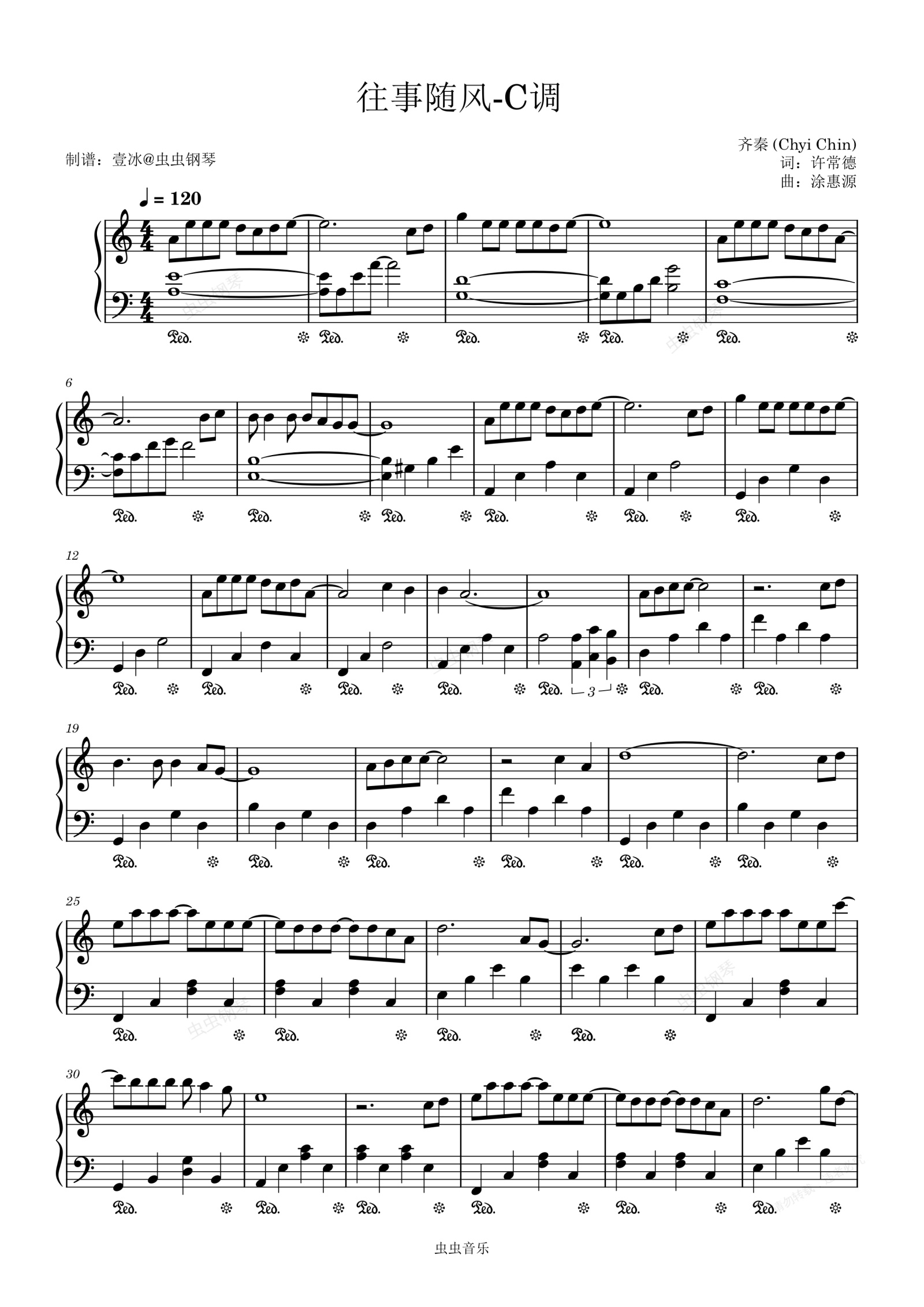 钢琴谱:【网络热曲】往事随风//简单易上手-C调