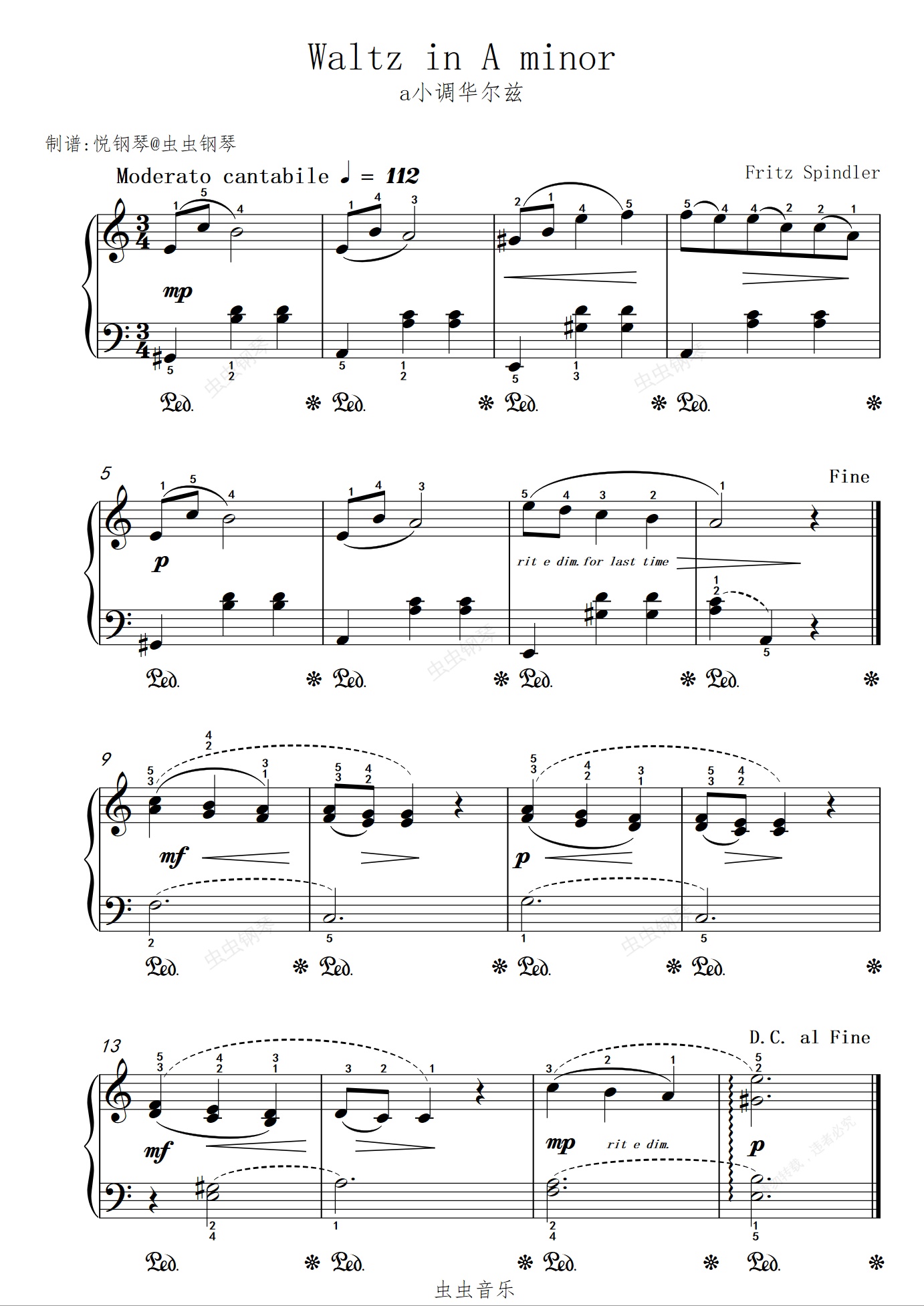 钢琴谱:a小调华尔兹//Waltz in A minor、免费乐谱【唯美】