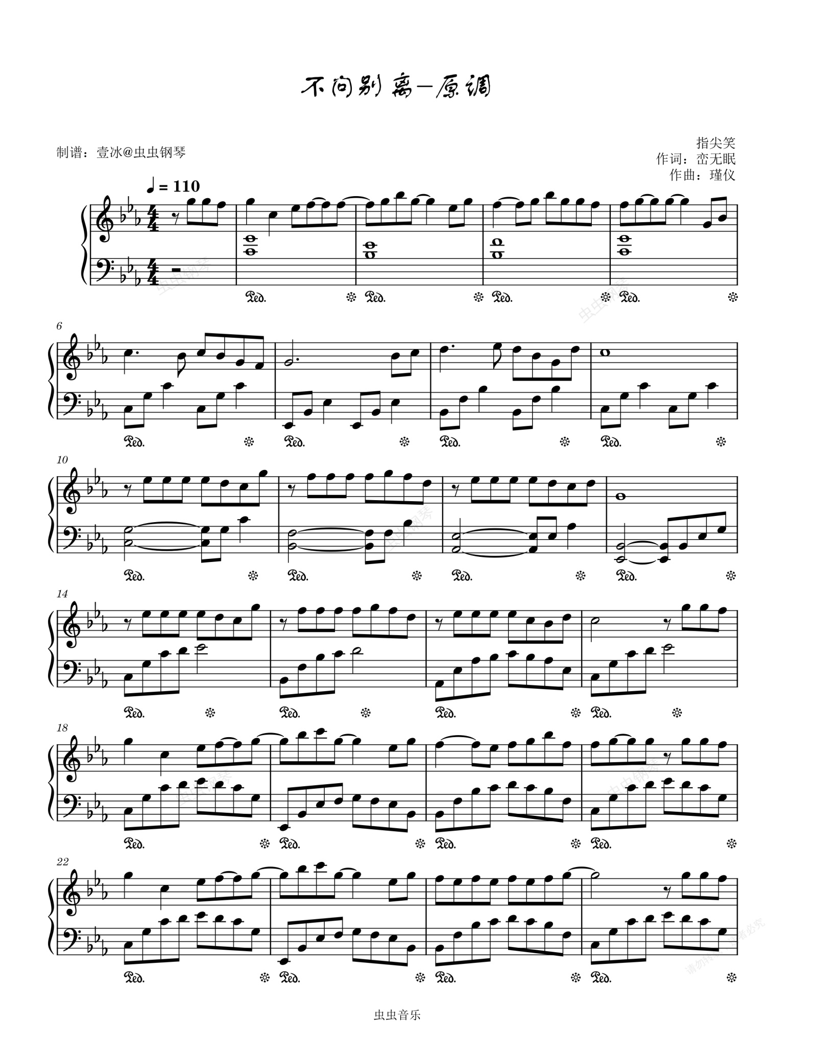 钢琴谱:【国风音韵】不问别离//指尖笑 简单易上手 完整-原调