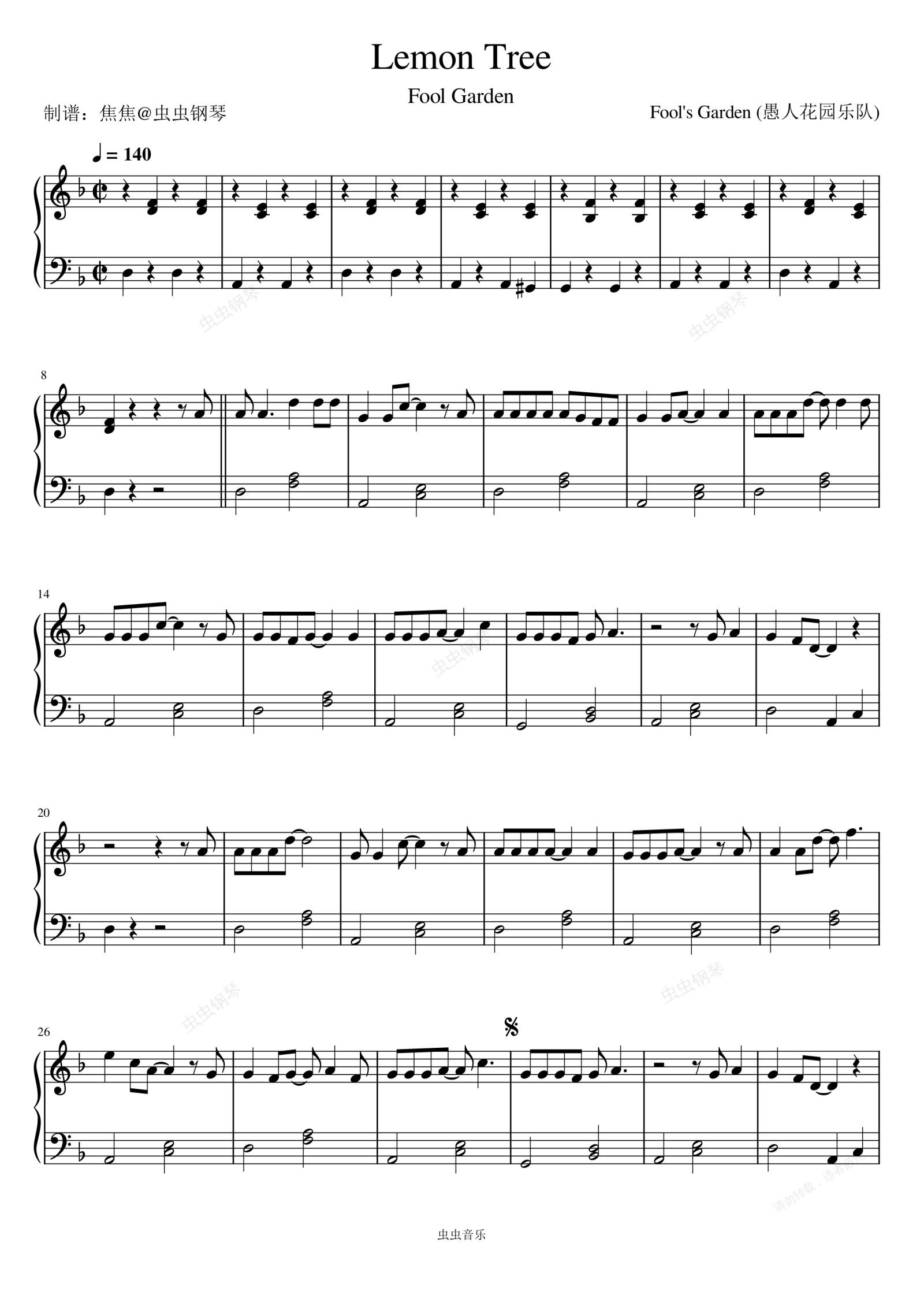 钢琴谱:Lemon Tree - Fool's Garden (愚人花园乐队)