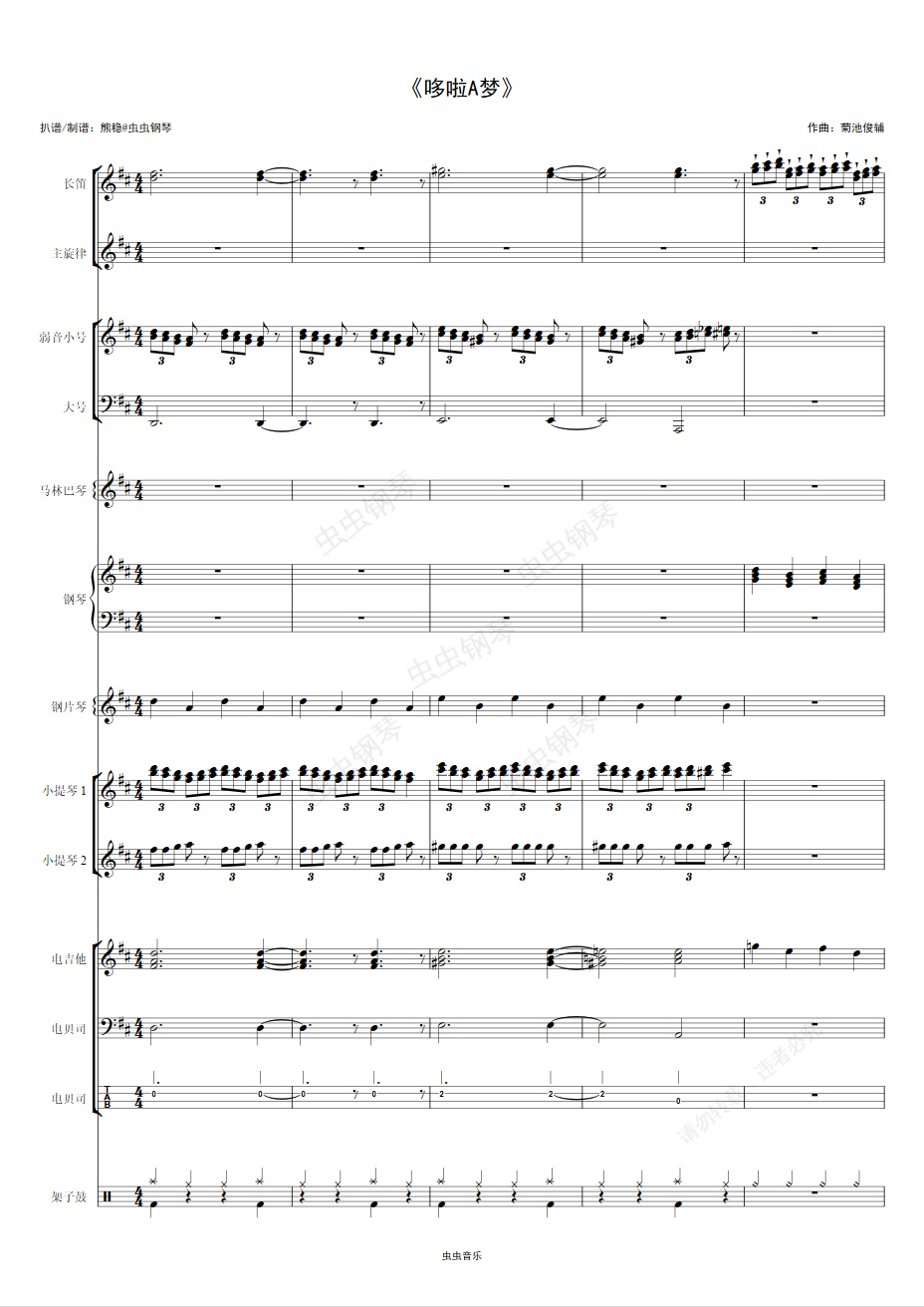 钢琴谱:《哆啦A梦》主题曲 D调总谱