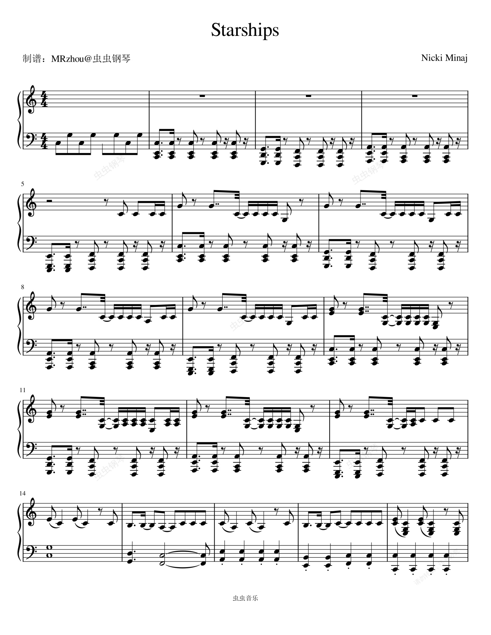 钢琴谱:Starships - Nicki Minaj
