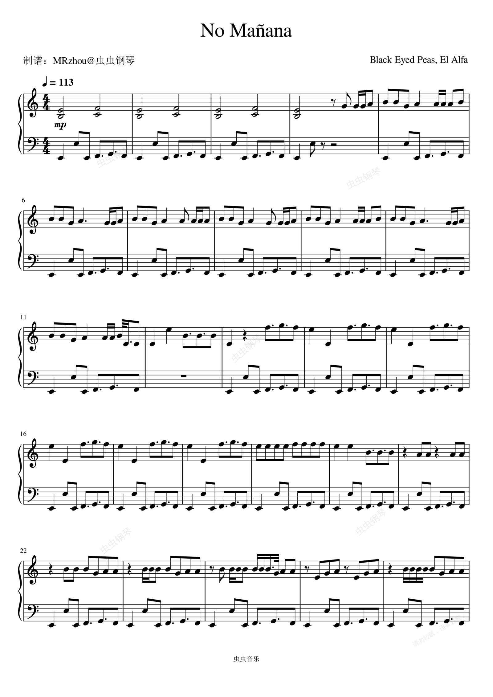 钢琴谱:NO MAÑANA (Explicit) - Black Eyed Peas/El Alfa