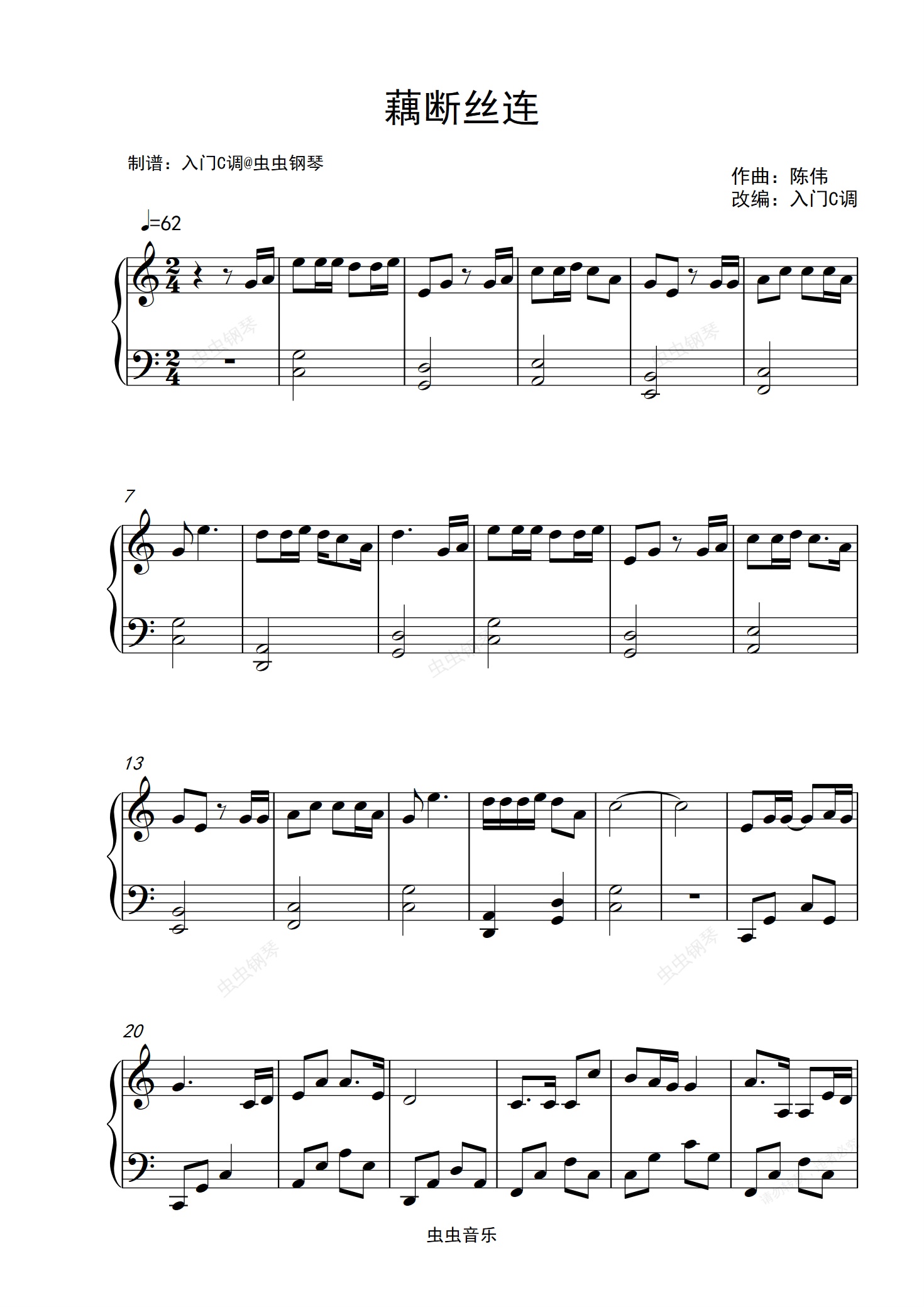 钢琴谱:【经典老歌】陈瑞《藕断丝连》入门C调简单版
