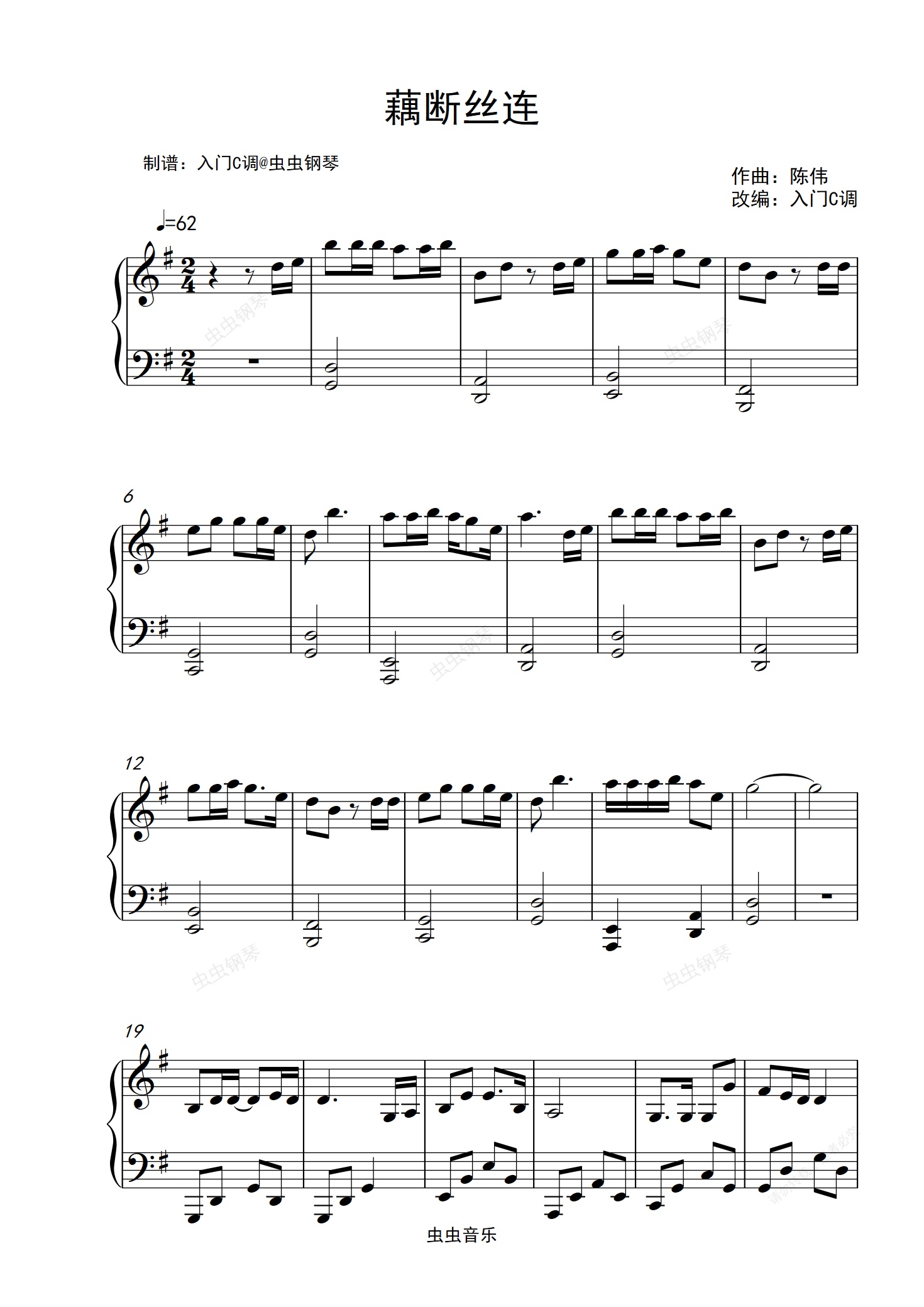 钢琴谱:【经典老歌】陈瑞《藕断丝连》G调简单版