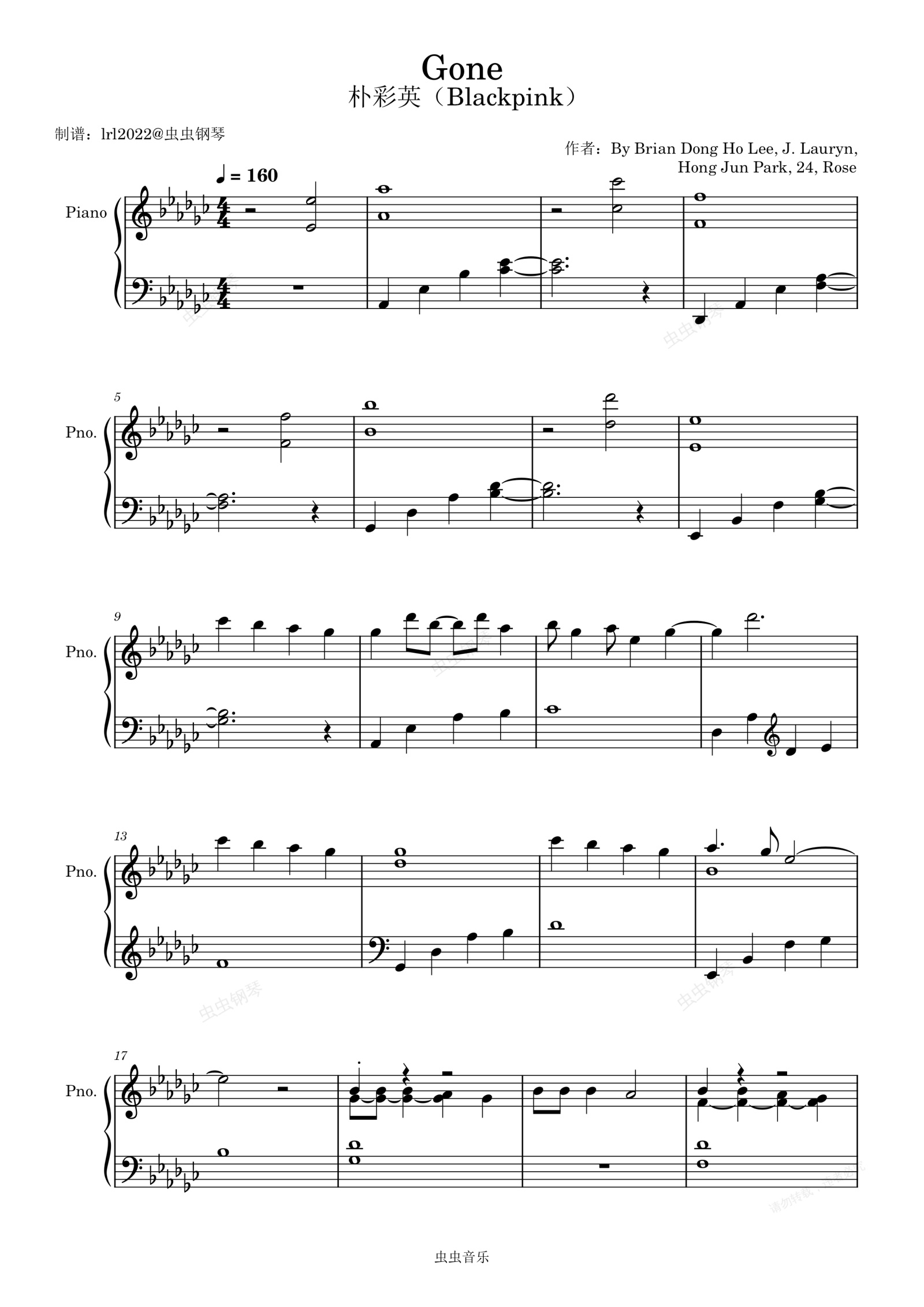 钢琴谱:Gone - Rosé (Blackpink) - 朴彩英 - 钢琴独奏