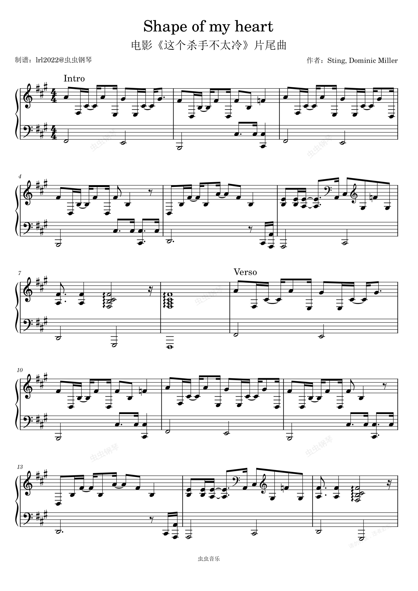 钢琴谱:Shape of my heart - 电影《这个杀手不太冷》片尾曲 - 钢琴独奏