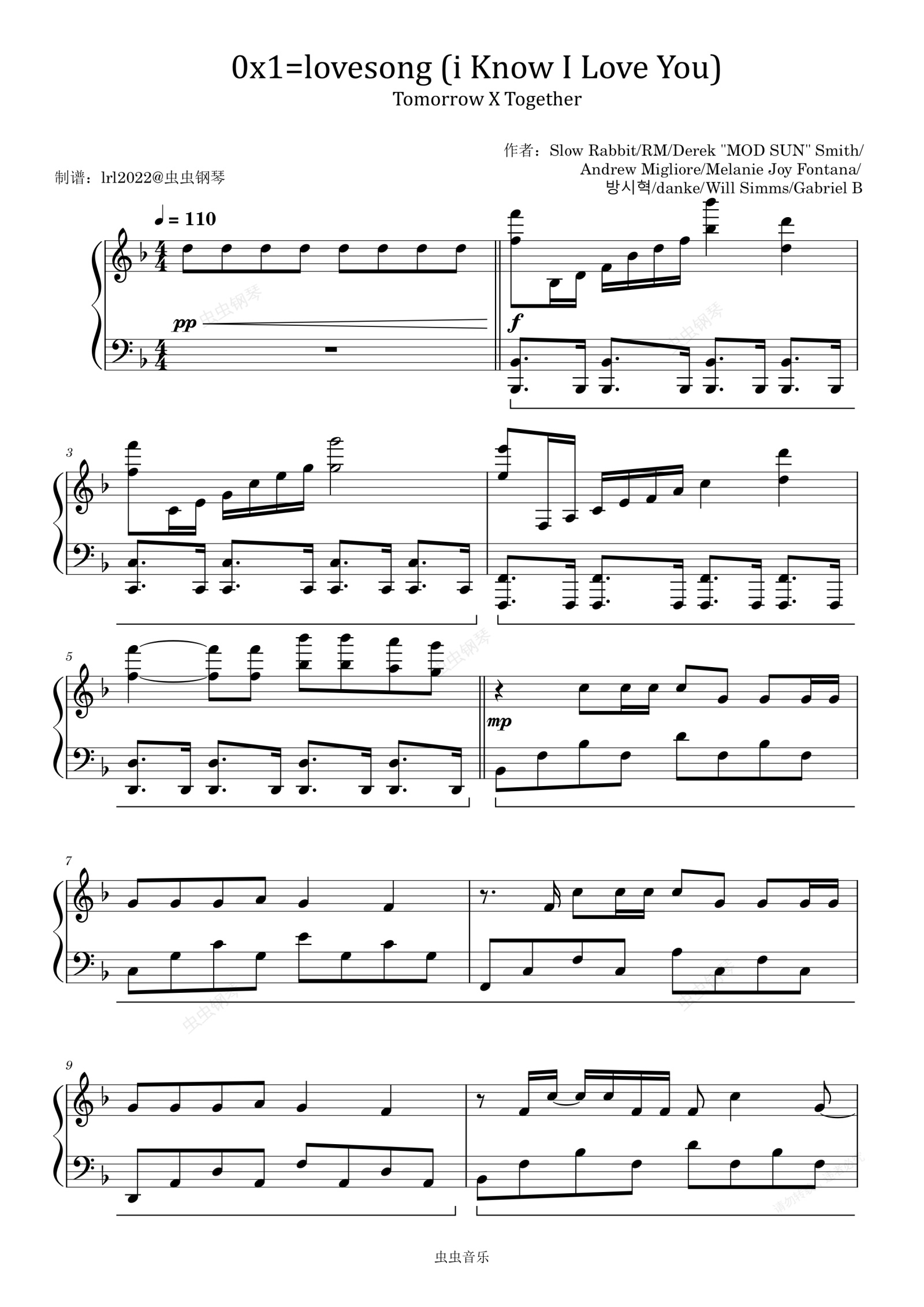 钢琴谱:0X1=LOVESONG (I Know I Love You) - TXT (투모로우바이투게더) - 钢琴独奏