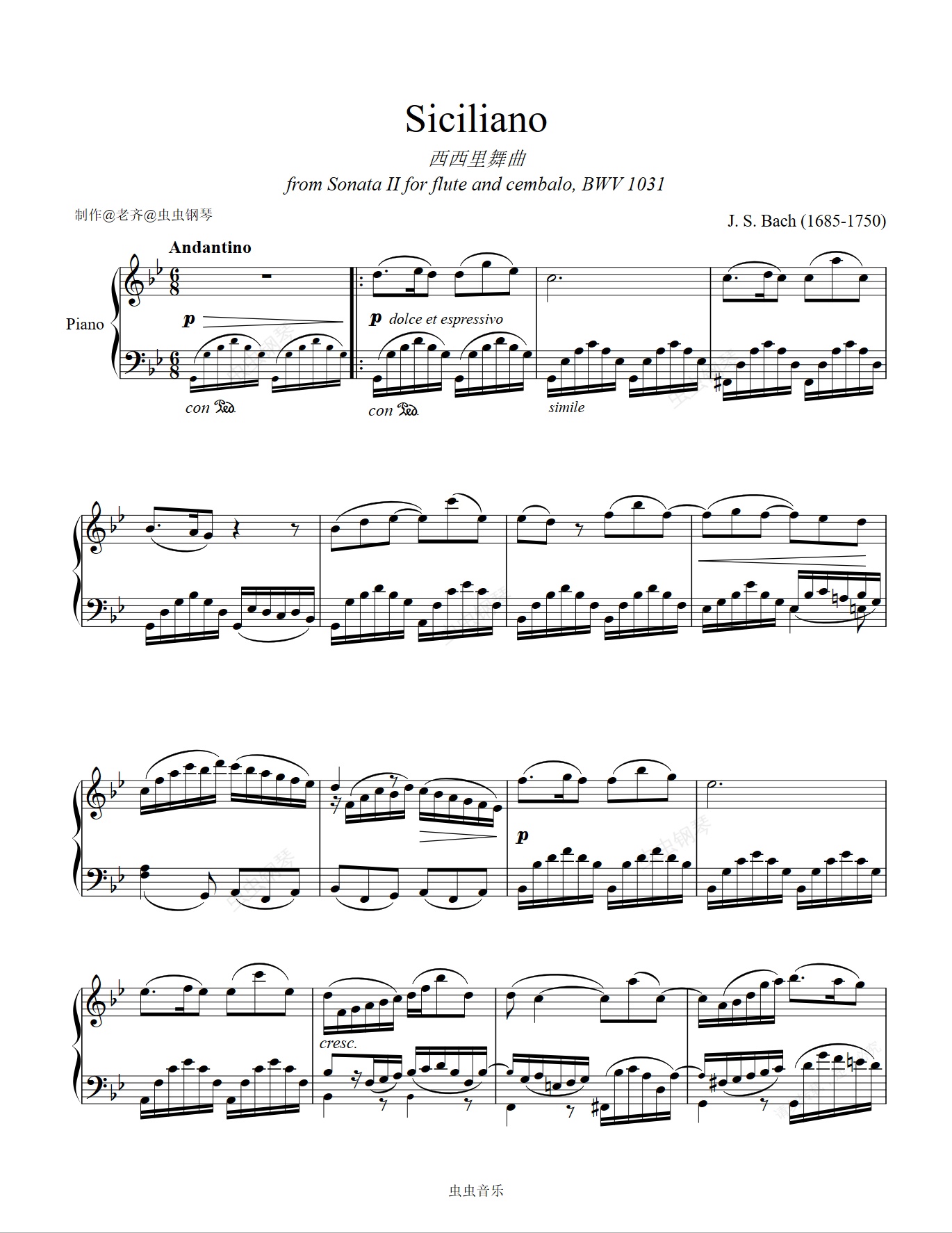 钢琴谱:【巴赫】西西里舞曲 Siciliano