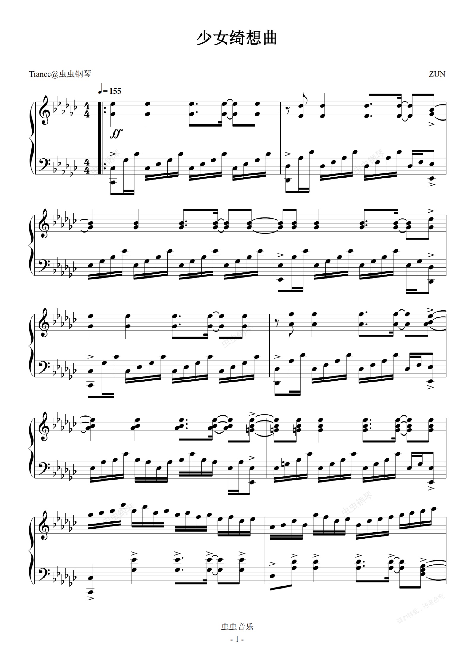 钢琴谱:《少女绮想曲》独奏版,10几年前就喜欢的曲子,亲测不能弹.....