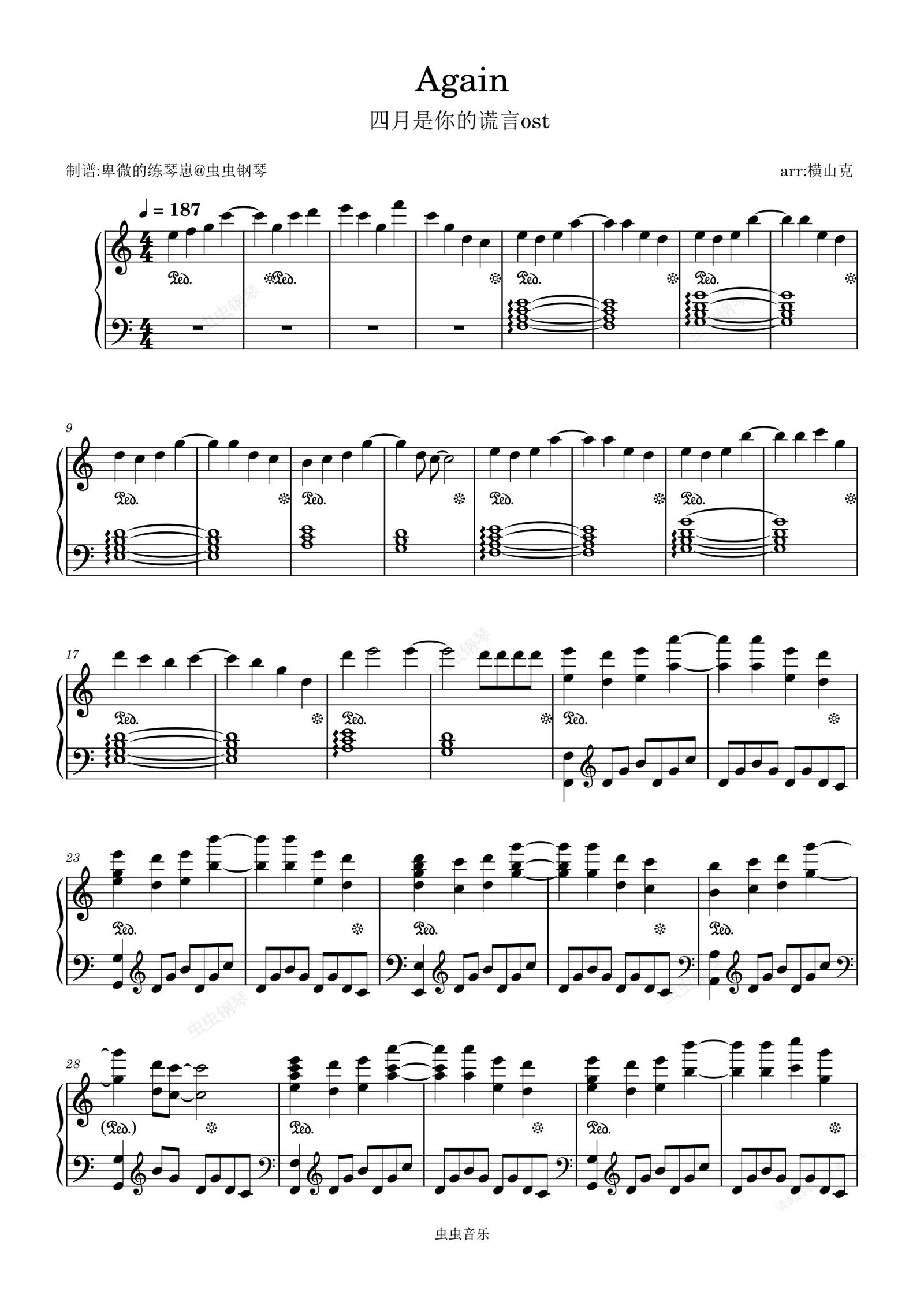 钢琴谱:四月是你的谎言OST-again