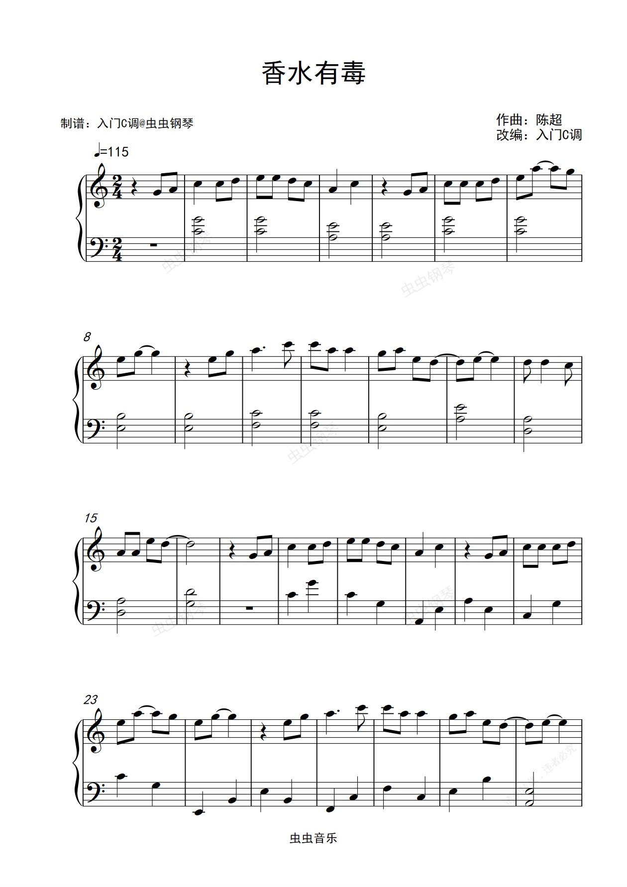 钢琴谱:【经典老歌】胡杨林《香水有毒》入门C调简单版