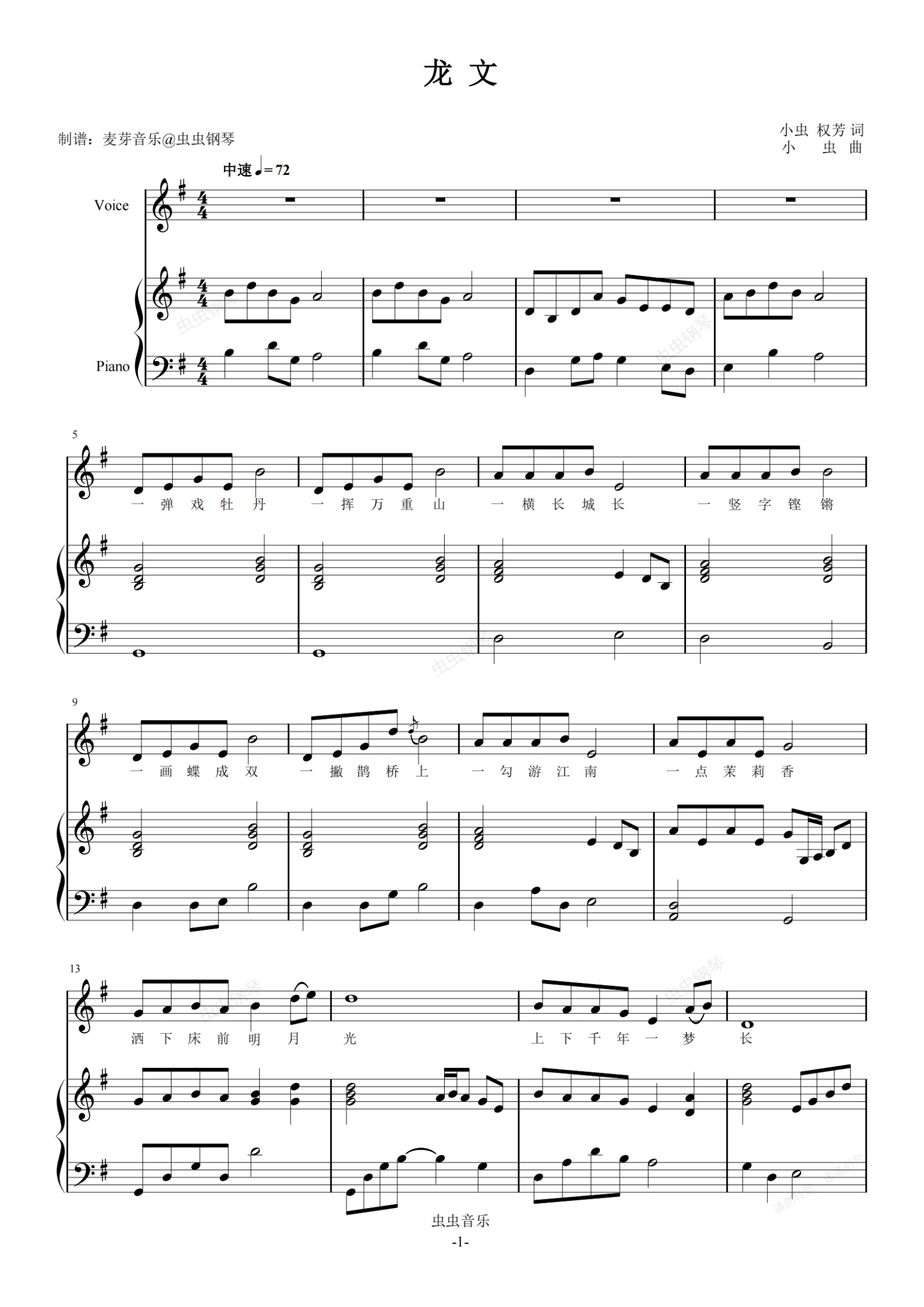 钢琴谱:龙文G调弹唱《开心辞典》节目“开心学国学”的主题曲
