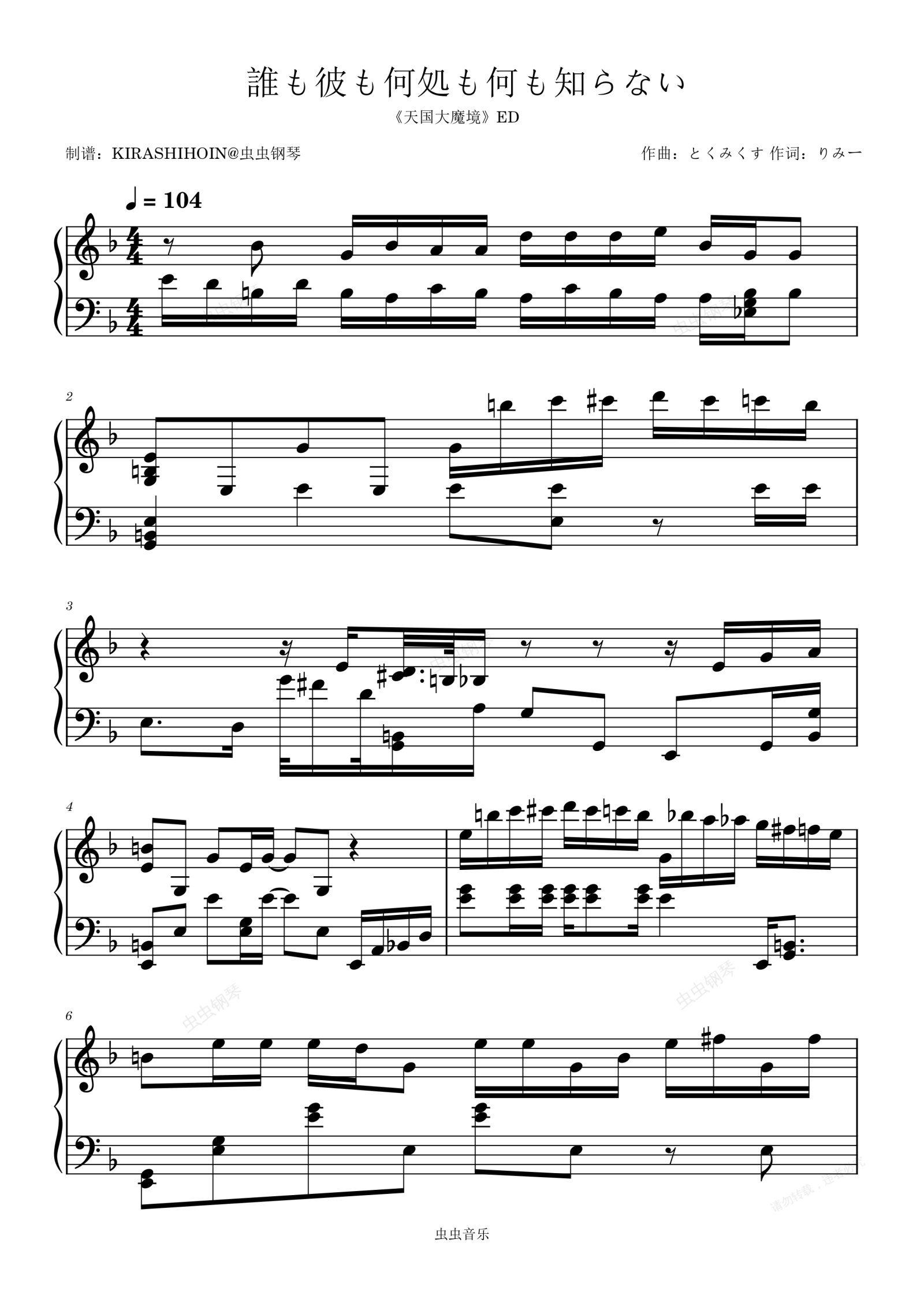 钢琴谱:誰も彼も何処も何も知らない(《天国大魔境》ED/片尾曲)- ASOBI同盟
