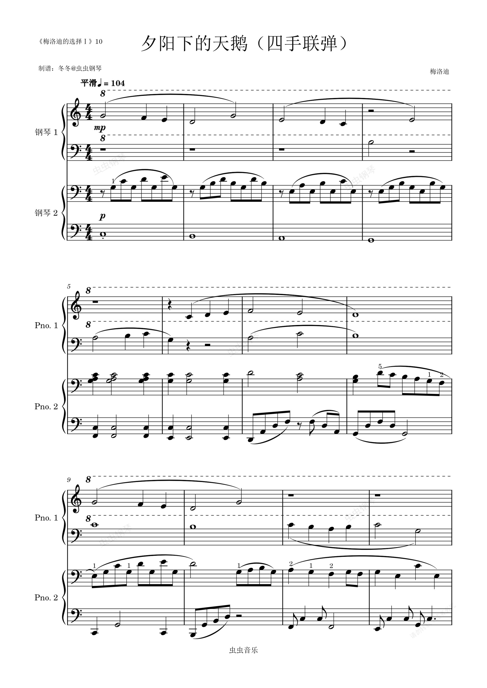 钢琴谱:夕阳下的天鹅(四手联弹)