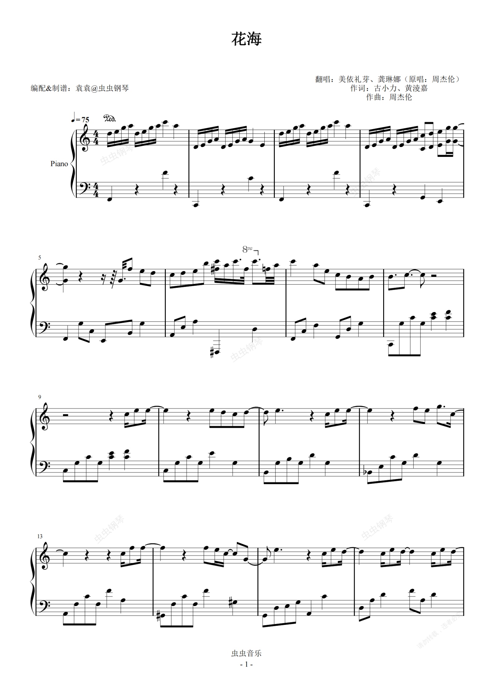 钢琴谱:花海 美依礼芽 龚琳娜 完整编配版 C调