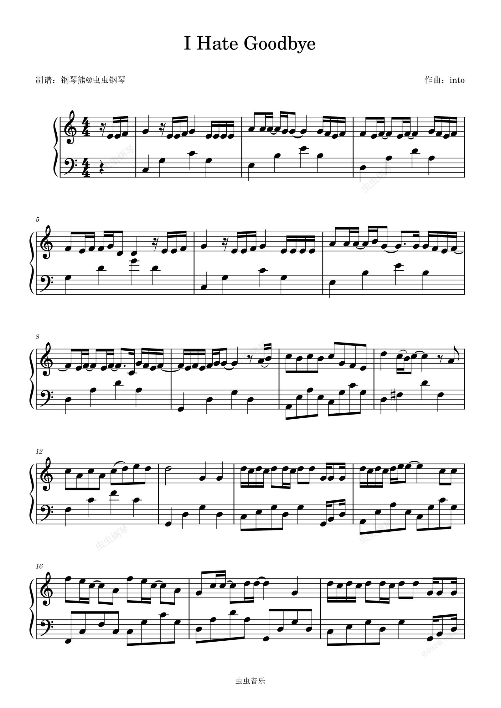 钢琴谱:《I hate goodbye》极致还原版~ 粉丝求谱成功~