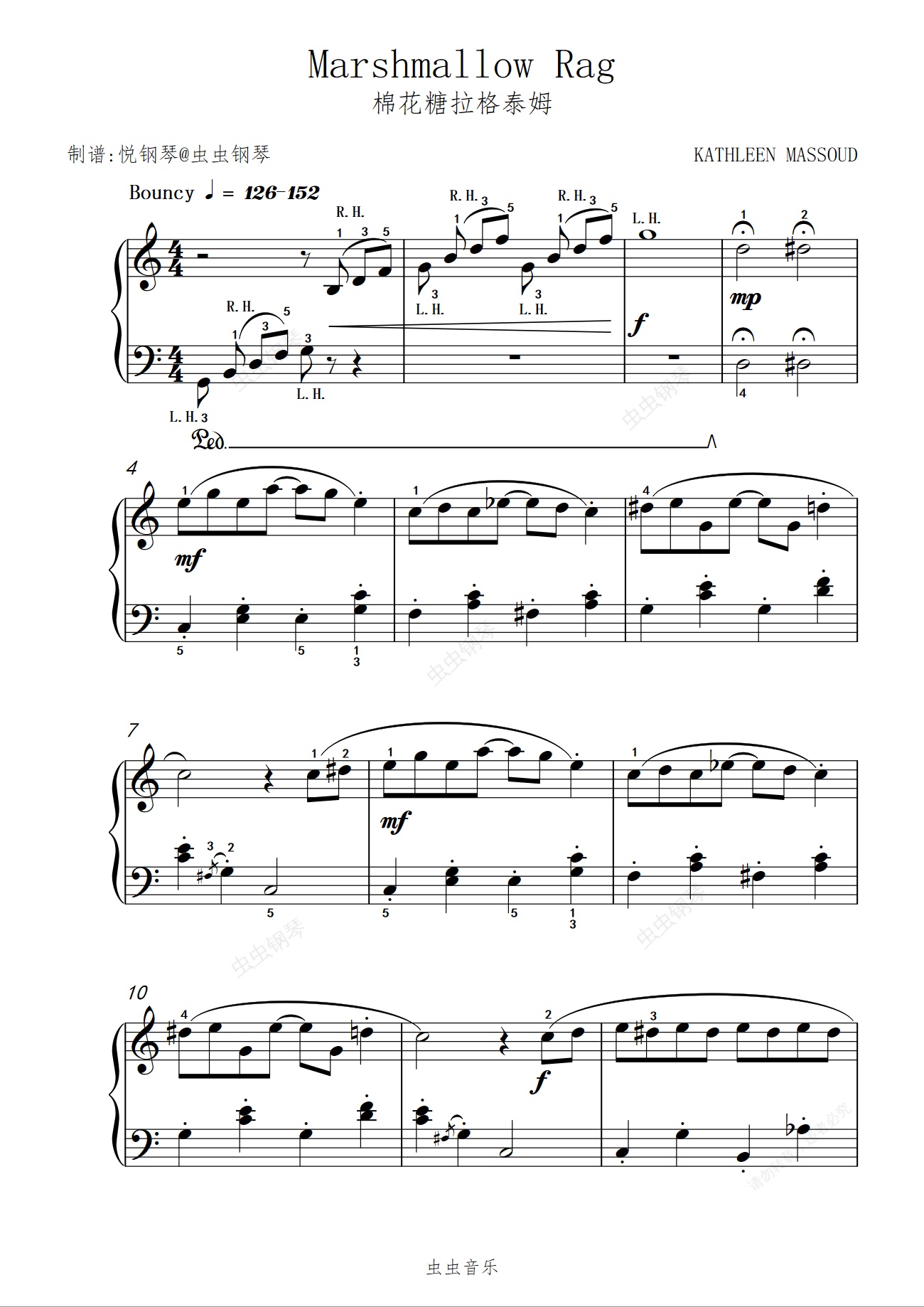 钢琴谱:棉花糖拉格泰姆//Marshmallow Rag【爵士风格】