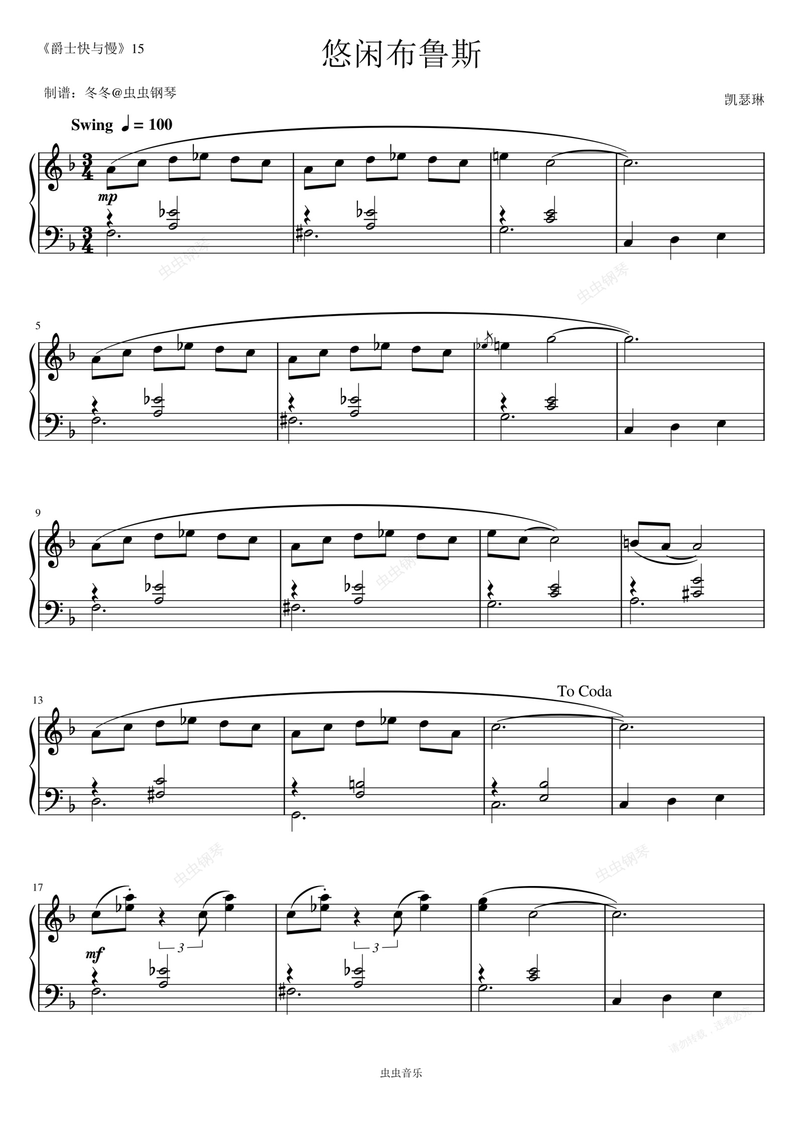 您的位置: 首页 > 钢琴谱库 > 悠闲布鲁斯钢琴谱-凯瑟琳