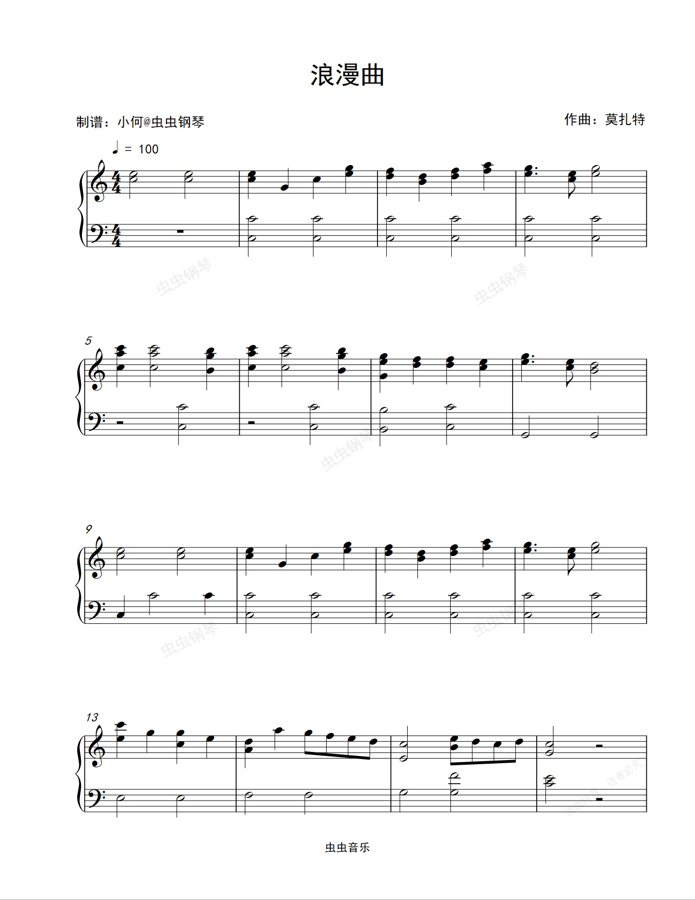 钢琴谱:浪漫曲-Romance-简单版-莫扎特