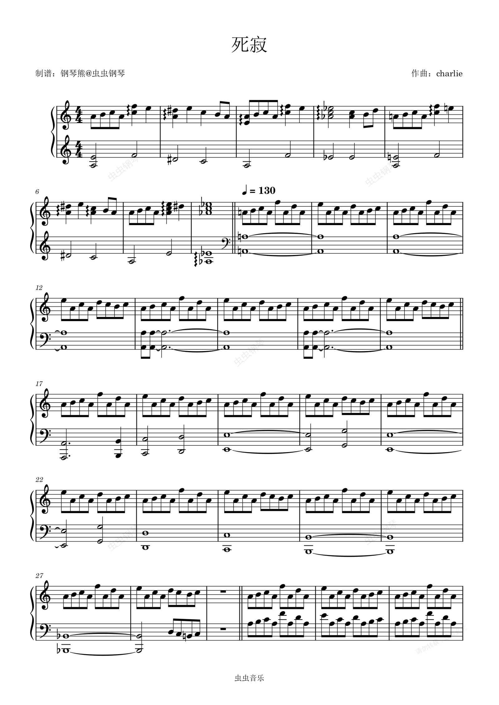 钢琴谱:《死寂》极致还原版 C大调 粉丝点谱成功