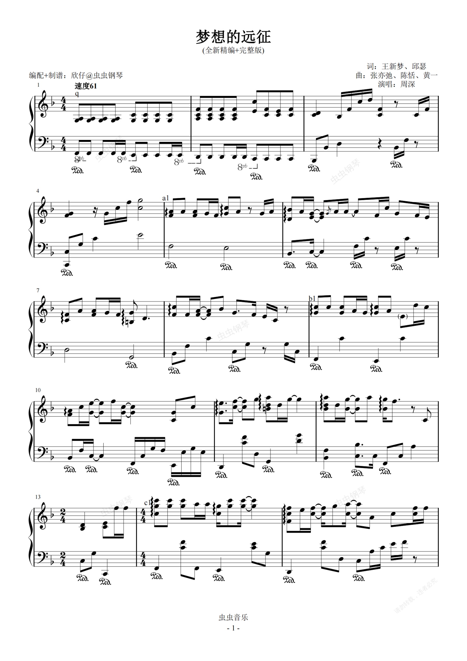 钢琴谱:周深-F《梦想的远征》(全新精编+完整版)