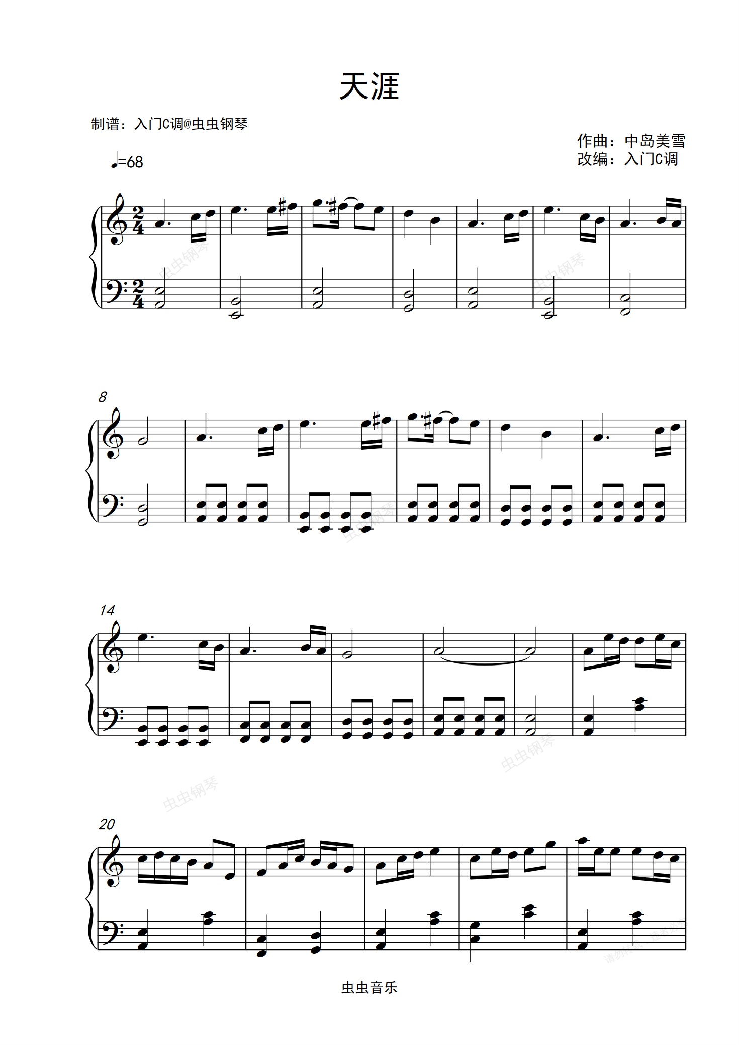 钢琴谱:【经典老歌】任贤齐《天涯》入门C调简单版