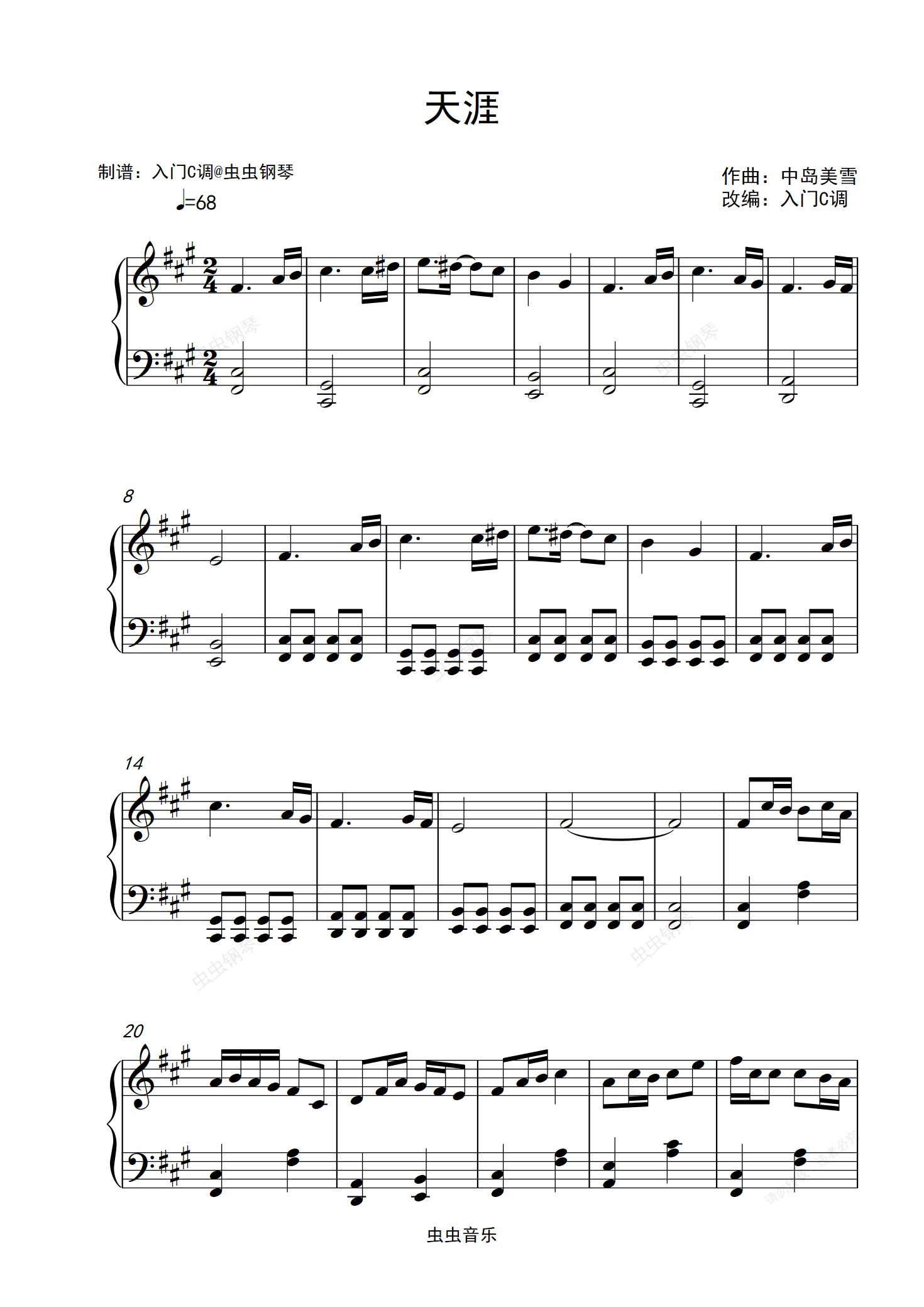 钢琴谱:【经典老歌】任贤齐《天涯》A调简单版