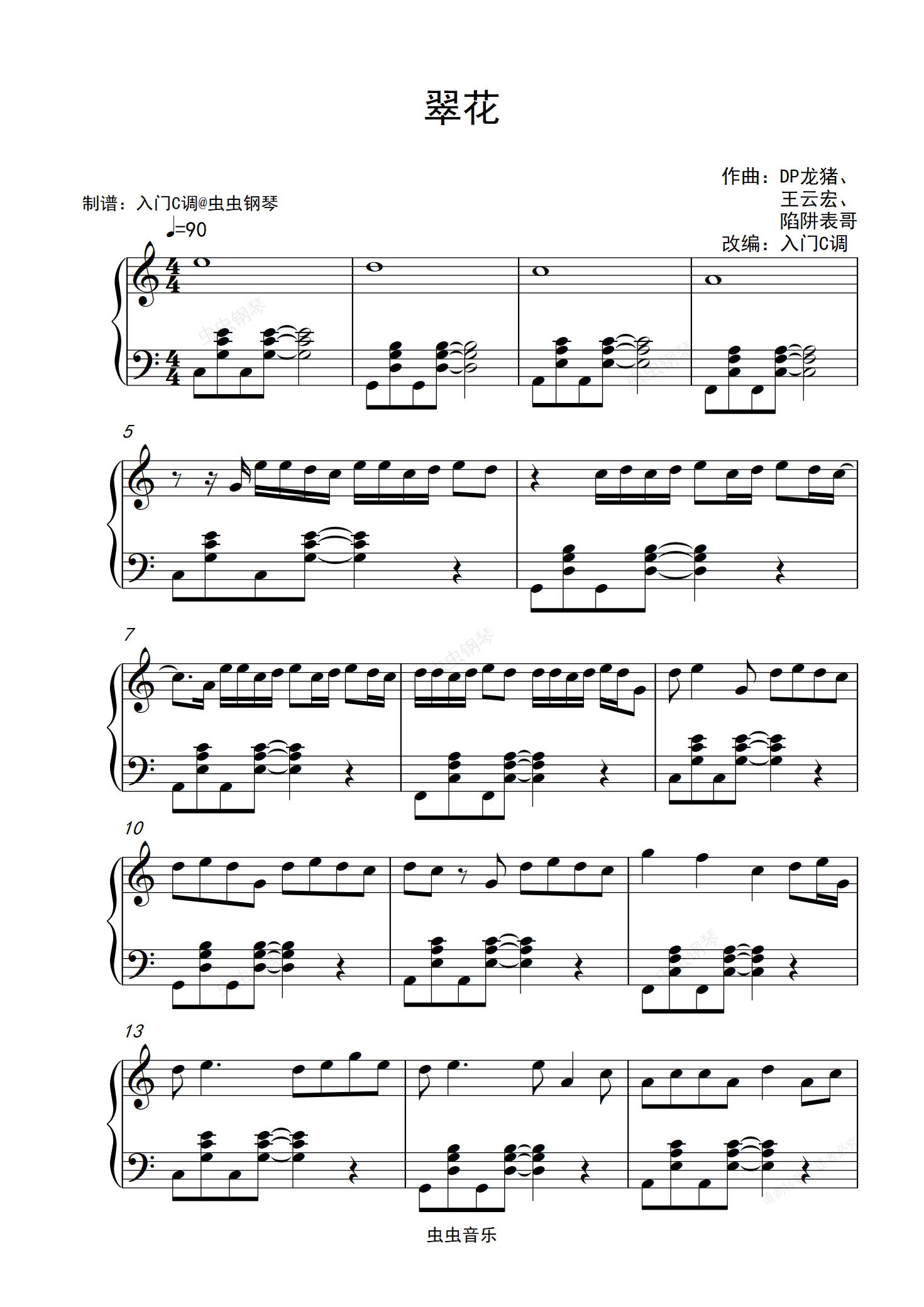 钢琴谱:DP龙猪、 王云宏、 陷阱表哥《翠花》入门C调简单版