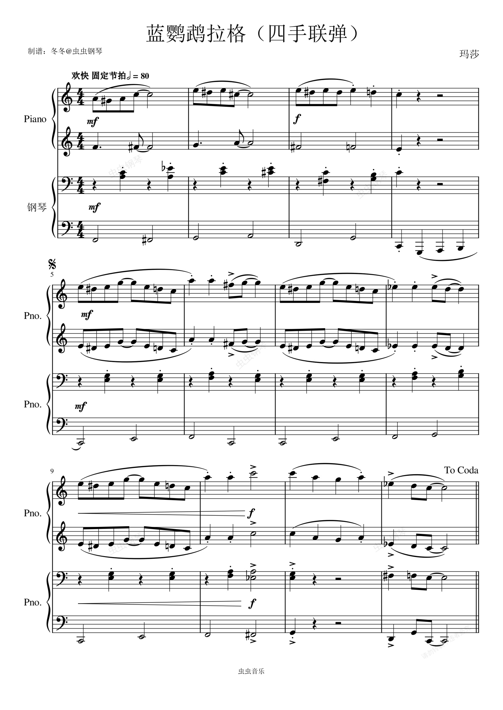 钢琴谱:蓝鹦鹉拉格(四手联弹)