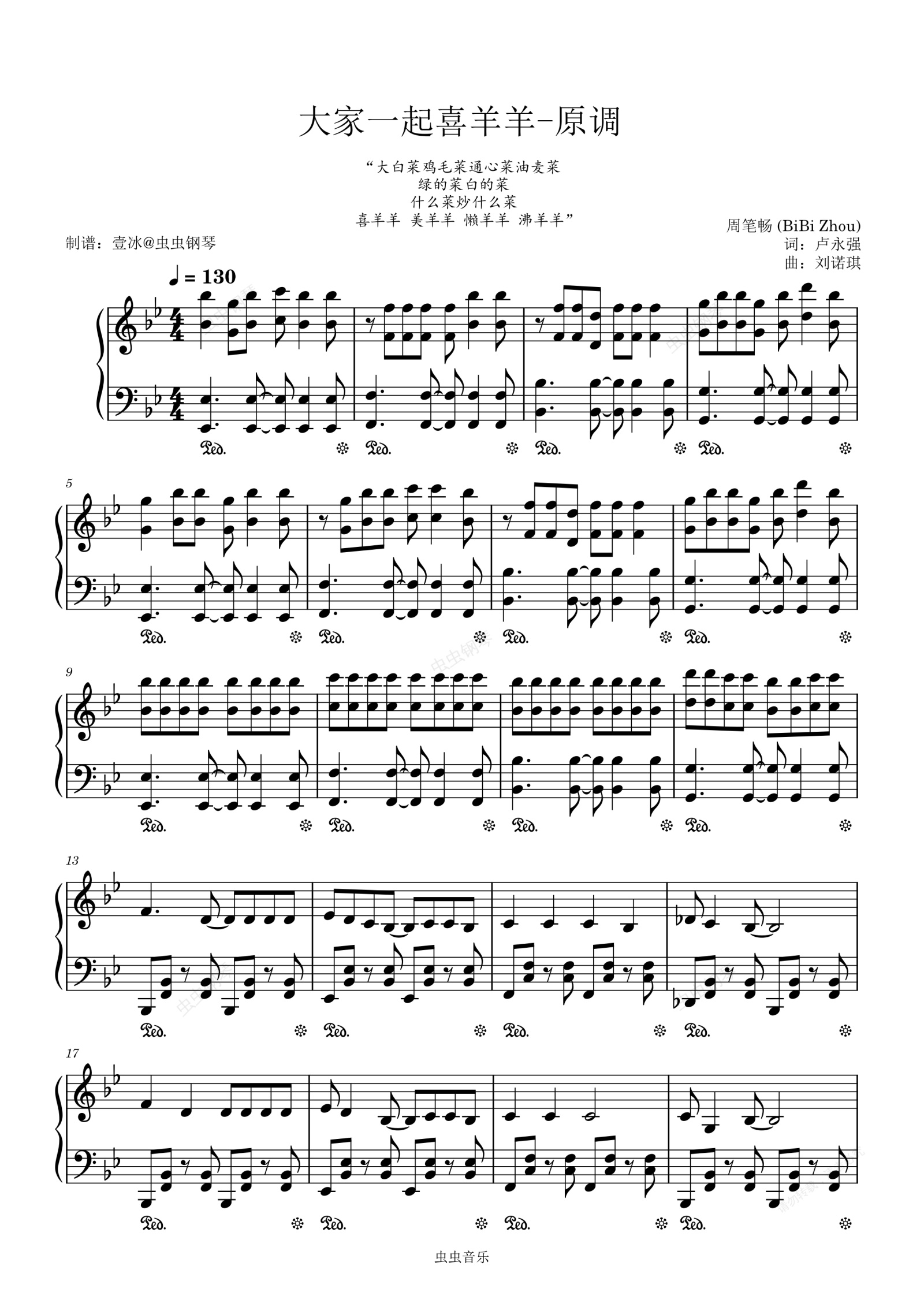 钢琴谱:大家一起喜羊羊// (大白菜鸡毛菜) 高燃改编-原调