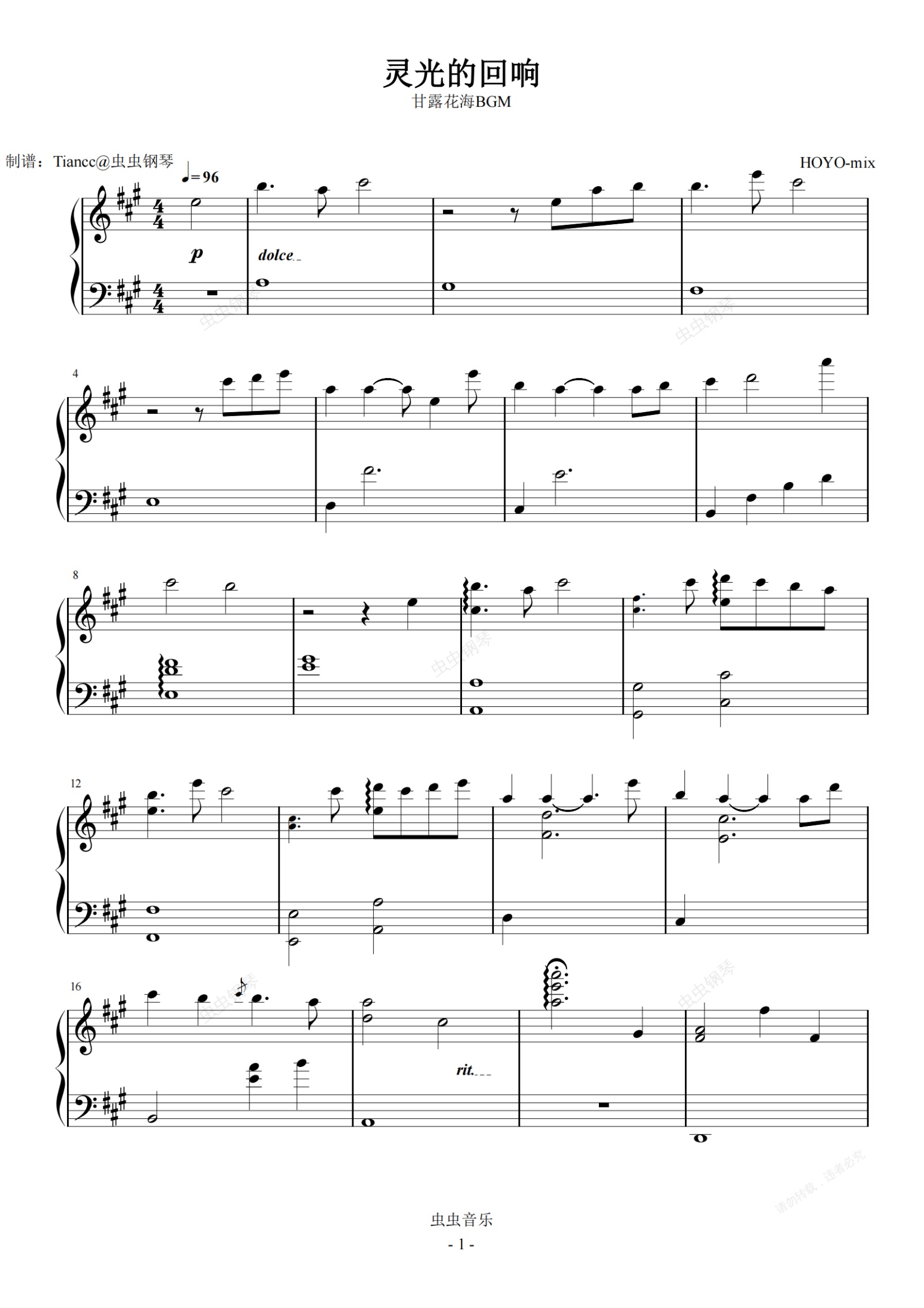 钢琴谱:《灵光的回响》原神花神任务,甘露花海BGM