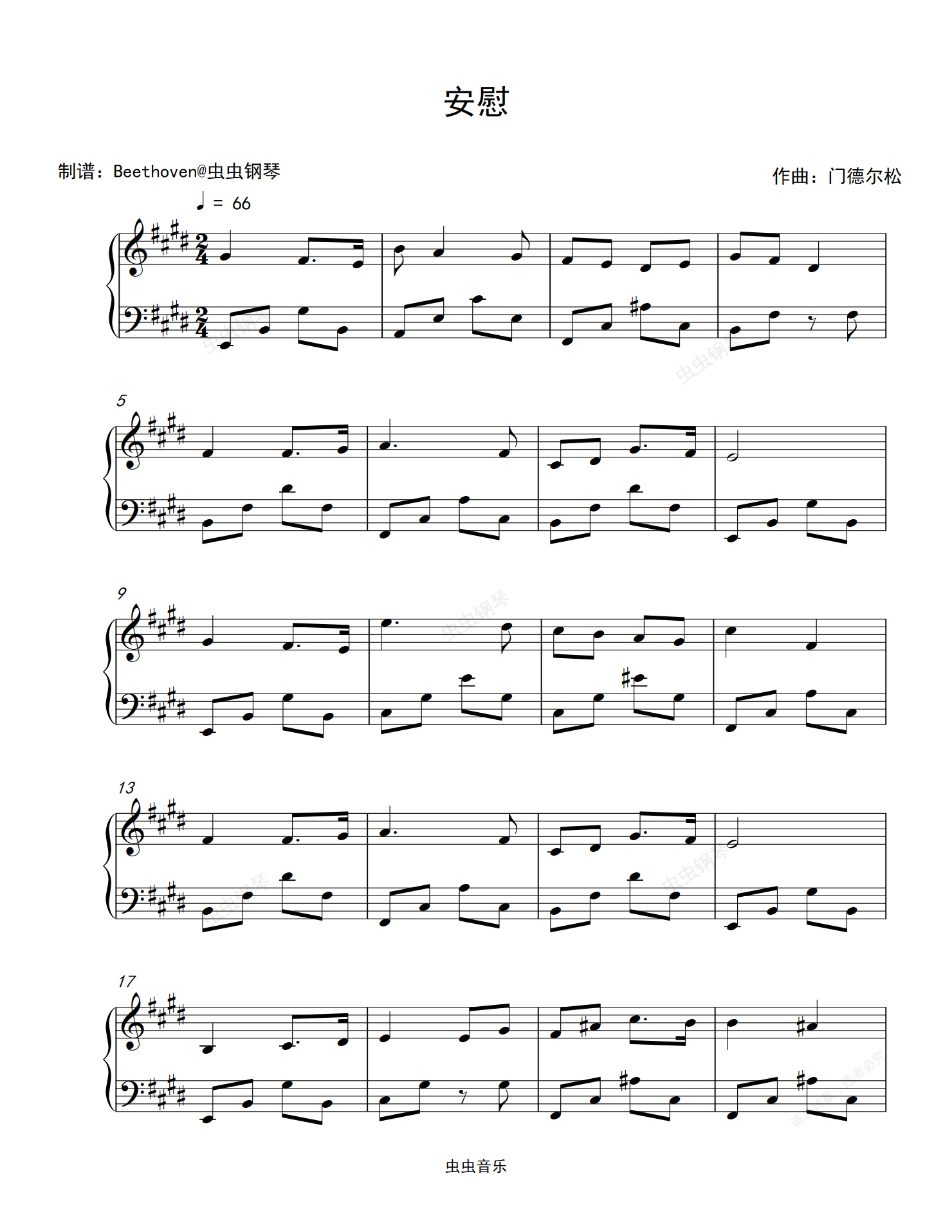 钢琴谱:安慰-门德尔松
