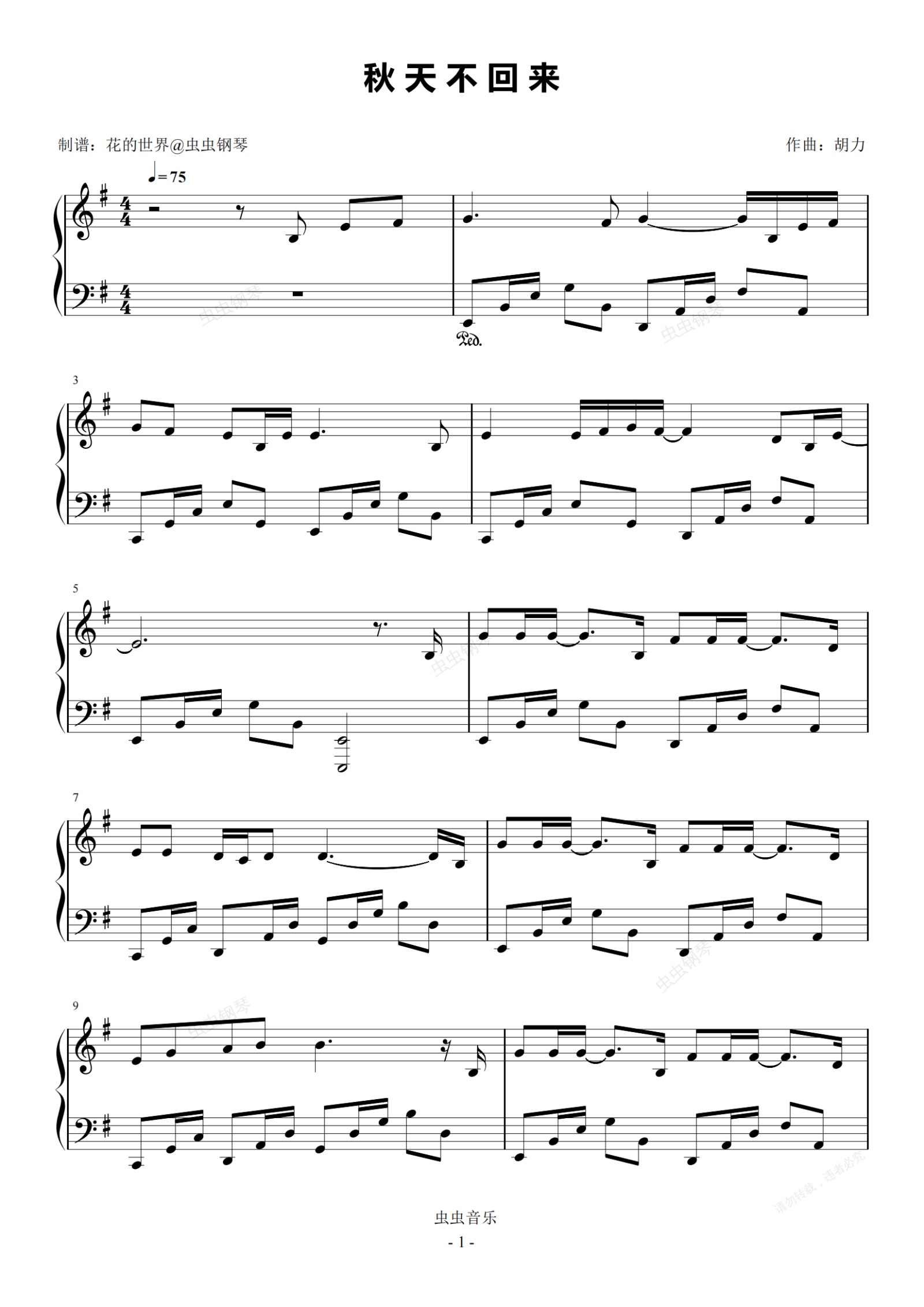 钢琴谱:秋天不回来 原调简易版 王强  流行经典