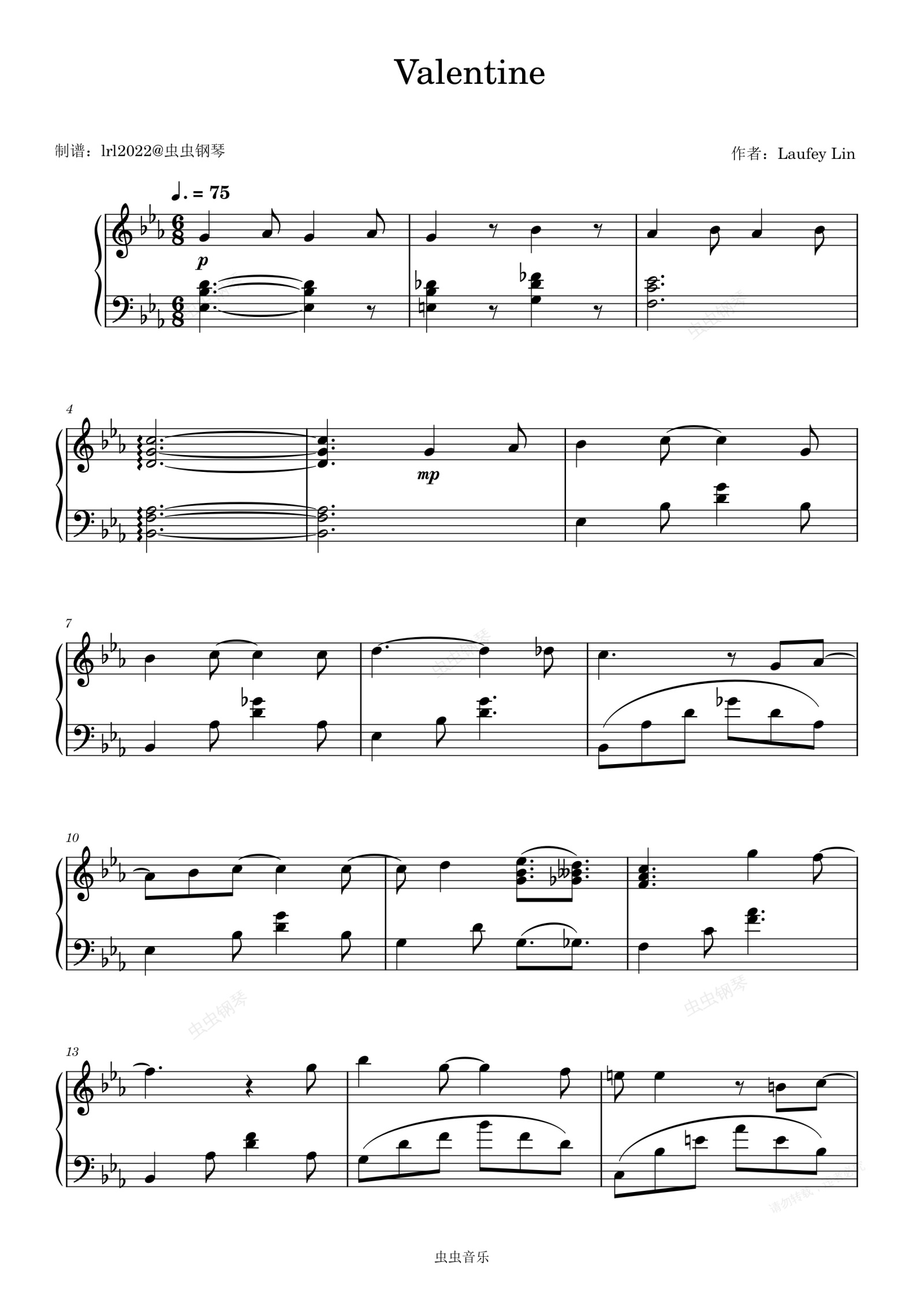 钢琴谱:Valentine - Laufey - 钢琴独奏