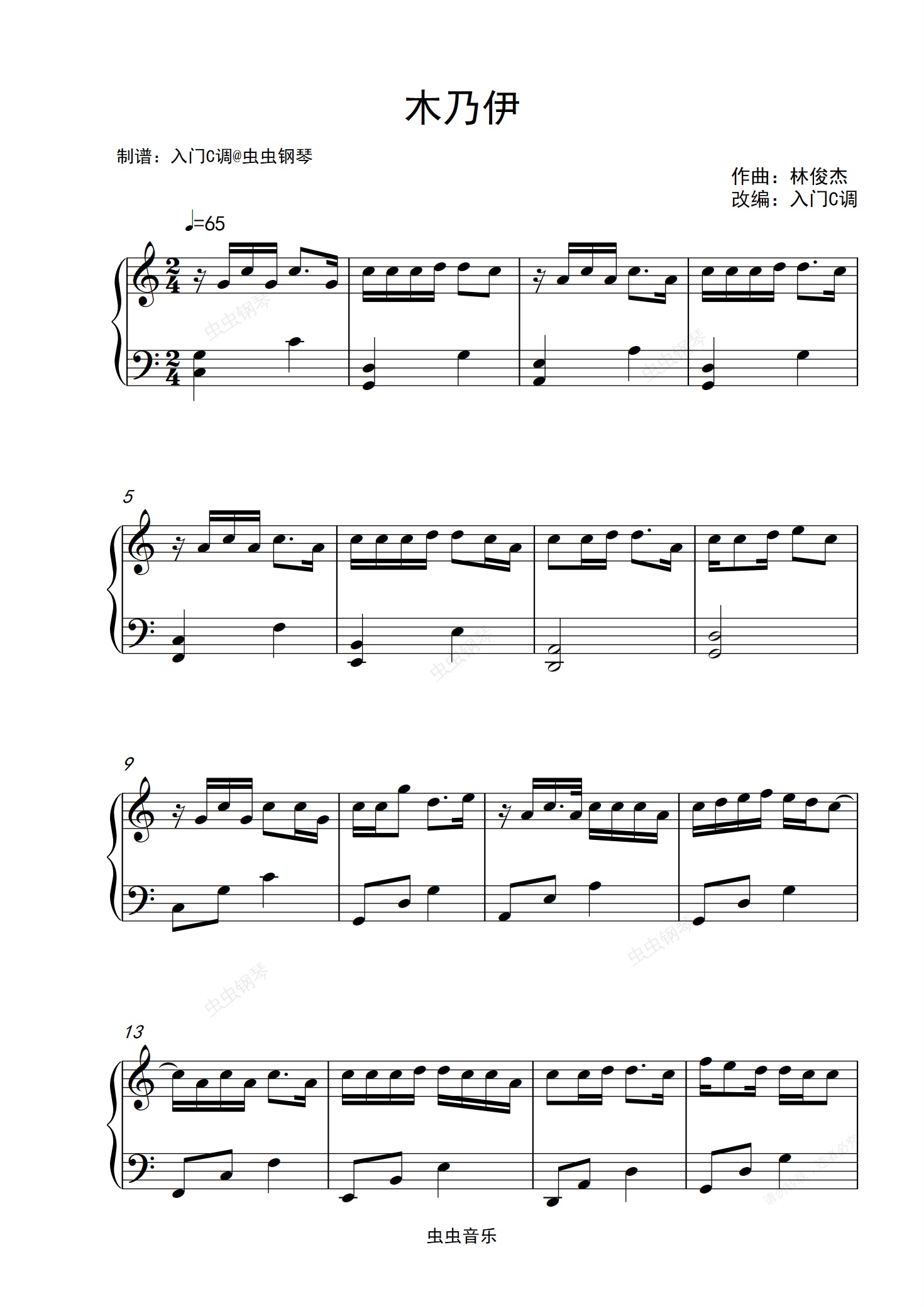 钢琴谱:【90后记忆】林俊杰《木乃伊》入门C调简单版