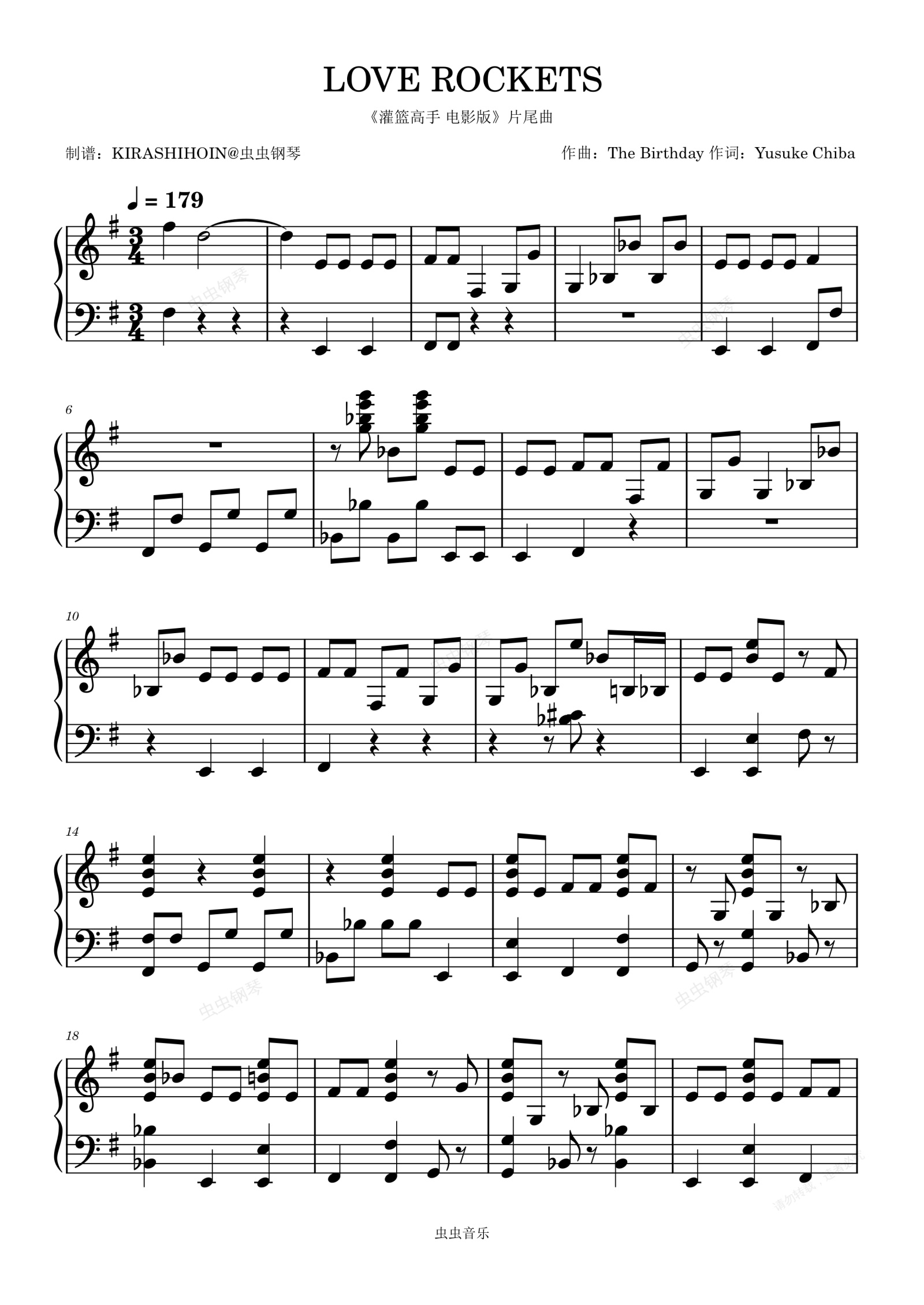 钢琴谱:LOVE ROCKETS(《灌篮高手 电影版》片尾曲)- The Birthday